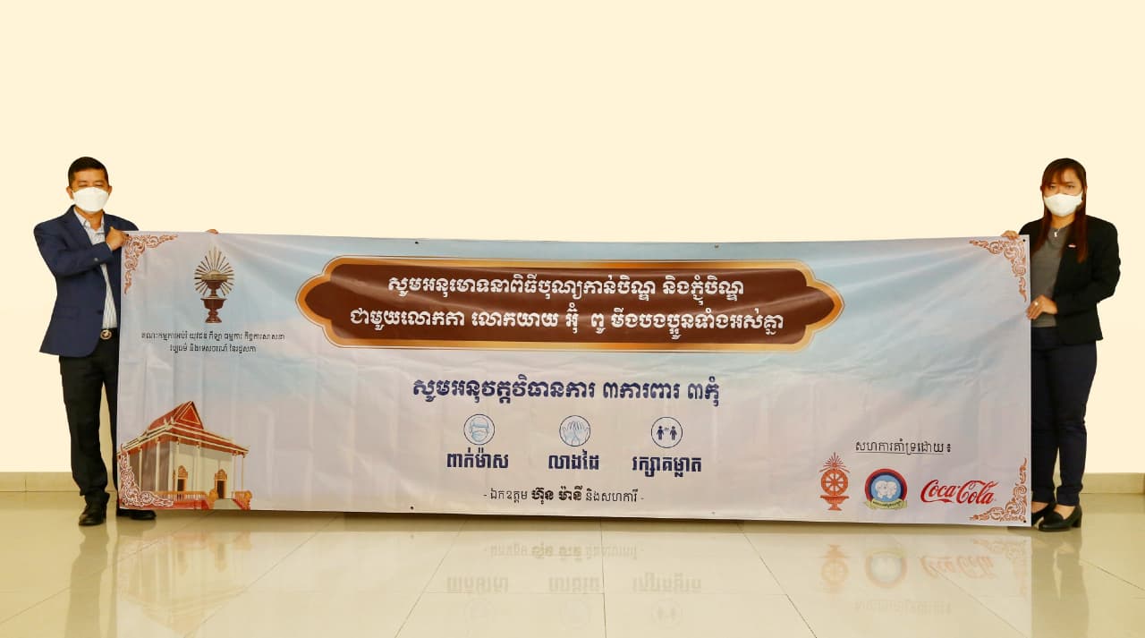 ផ្ទាំងបដាអប់រំផ្សព្វផ្សាយ ដែលជាការរួមចំណែករបស់ក្រុមហ៊ុនកូកា-កូឡាកម្ពុជា ត្រូវបានប្រគល់ជូនគណៈកម្មការទី៧នៃរដ្ឋសភា និង ស.ស.យ.ក ដោយមានការចូលរួមប្រគល់-ទទួលដោយកញ្ញា សម្បត្តិ មុនីវរលក្ខណ៍ នាយកផ្នែកទំនាក់ទំនងកិច្ចការសាធារណៈនៃក្រុមហ៊ុនកូកា-កូឡាកម្ពុជា និងឯកឧត្តម ខៀវ ភារិទ្ធ លេខាធិការ និងជាតំណាងដ៏ខ្ពង់ខ្ពស់ ឯកឧត្តម ហ៊ុន ម៉ានី ប្រធានគណៈកម្មការទី៧នៃរដ្ឋសភា ដែលគ្រោងនឹងចងនៅតាមបណ្តាវត្តអារាមនានានៅទូទាំងប្រទេស តាមរយៈក្រុមការងាររបស់សហភាពសហព័ន្ធយុវជនកម្ពុជា មុនថ្ងៃកាន់បិណ្ឌទី១ ត្រូវនឹងថ្ងៃទី២២ ខែកញ្ញា ឆ្នាំ២០២១ខាងមុខ។ កញ្ញា សម្បត្តិ មុនីវរលក្ខណ៍ នាយកផ្នែកទំនាក់ទំនងកិច្ចការសាធារណៈនៃក្រុមហ៊ុនបានលើកឡើងថា យើងខ្ញុំមានសេចក្តីរីករាយណាស់ ដែលពិធីបុណ្យភ្ជុំបិណ្ឌត្រូវបានអនុញ្ញាតឱ្យប្រារព្វតាមប្រពៃណីជាតិ បន្ទាប់ពីកម្ពុជាសម្រេចបានអត្រាការចាក់វាក់សាំងកូវីដ-១៩ខ្ពស់គួរជាទីមោទន។ យ៉ាងណាក៏សូមឱ្យបងប្អូនទាំងអស់រីករាយដោយប្រកាន់ខ្ជាប់នូវ៣ការពារជានិច្ច ដើម្បីសុខសុវត្ថិភាព ហើយយើងខ្ញុំសង្ឃឹមថា កម្ពុជានឹងអាចប្រារព្វពិធីបុណ្យជាតិធំៗទាំងឡាយទៀត តាមគន្លងថ្មីក្នុងបរិបទកូវីដ-១៩នេះ។ ឯកឧត្តម ខៀវ ភារិទ្ធ លេខាធិការ តំណាងឯកឧត្តម ហ៊ុន ម៉ានី ប្រធានគណៈកម្មការទី៧នៃរដ្ឋសភា មានប្រសាសន៍ថ្លែងអំណរគុណដល់ក្រុមហ៊ុនកូកា-កូឡាកម្ពុជាដែលបានចូលរួមឧបត្ថម្ភដល់គណៈកម្មការក្នុងការបោះពុម្ពបដានេះឡើង ដើម្បីជាការបញ្រ្ជាបសារអប់រំ និងក្រើនរំឭកដល់លោកយាយ លោកតា អ៊ុ ពូ មីង បងប្អូនដែលមកធ្វើបុណ្យនៅតាមទីវត្តអារាមឱ្យចូលរួមទប់ស្កាត់ការឆ្លងរាលដាលនៃជំងឺកូវីដ-១៩ ដោយប្រកាន់ខ្ជាប់នូវវិធាន ៣ការពារ ៣កុំ។ ឯកឧត្តមបានបន្ថែមថា «កាយវិការដ៏សប្បុរសនេះ មិនត្រឹមតែជាការរួមចំណែកដល់យុទ្ធនាការប្រយុទ្ធនឹងជំងឺកូវីដ-១៩ប៉ុណ្ណោះទេ តែក៏ជាបុណ្យកុសលដ៏ថ្លៃថ្លាមួយផងដែរ។