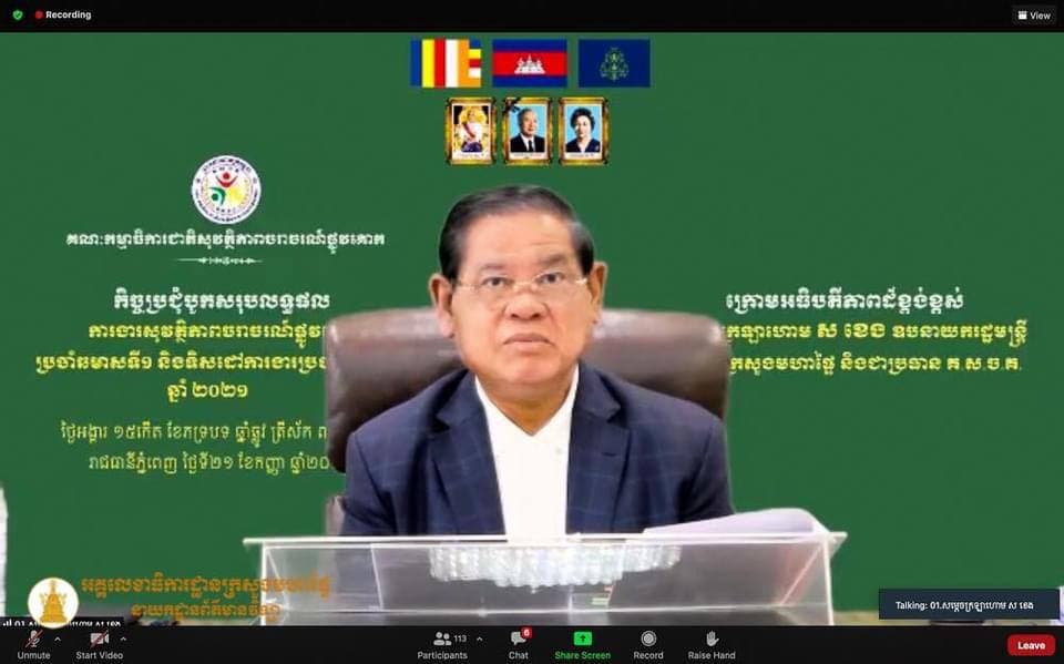 នាព្រឹកថ្ងៃអង្គារ ទី២១ ខែកញ្ញា ឆ្នាំ២០២១ នេះ តាមប្រព័ន្ធវីដេអូ (ZOOM) សម្ដេចក្រឡាហោម ស ខេង ឧបនាយករដ្ឋមន្ត្រី រដ្ឋមន្ដ្រីក្រសួងមហាផ្ទៃ និងជាប្រធានគណៈកម្មាធិការជាតិសុវត្ថិភាពចរាចរណ៍ផ្លូវគោក (គ.ស.ច.គ.) បានអញ្ជើញជាអធិបតីដ៏ខ្ពង់ខ្ពស់ដឹកនាំកិច្ចប្រជុំបូកសរុបការងារសុវត្ថិភាពចរាចរណ៍ផ្លូវគោកឆមាសទី១ និងលើកទិសដៅការងារឆមាសទី២ ឆ្នាំ២០២១ របស់គណៈកម្មាធិការជាតិសុវត្ថិភាពចរាចរណ៍ផ្លូវគោក(គ.ស.ច.គ.)។