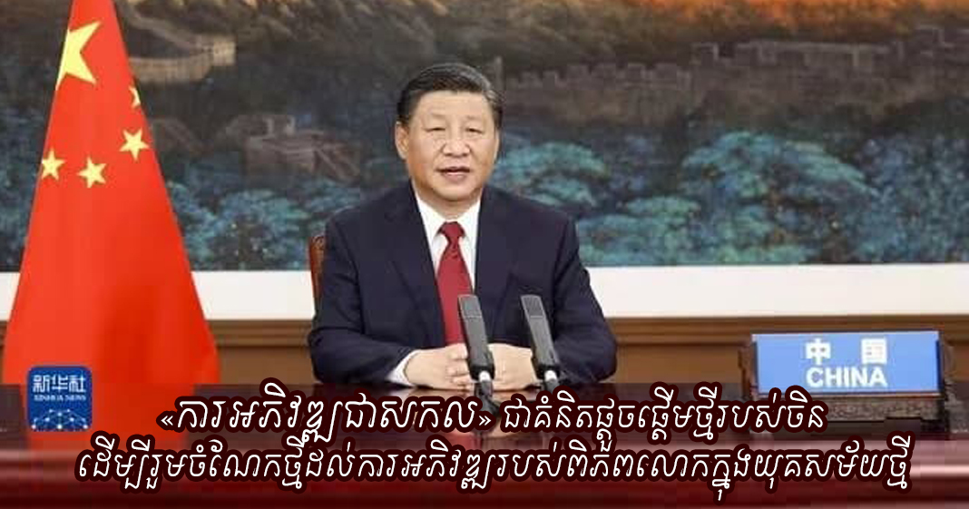 កាលពីពេលថ្មីៗកន្លងទៅនេះ ពេលអញ្ជើញចូលរួមការជជែកពិភាក្សាទូទៅនៃមហាសន្និបាតអង្គការសហប្រជាជាតិ ព្រមទាំងថ្លែងសុន្ទរកថាតាមប្រព័ន្ធវីដេអូ លោក ស៊ី ជីនភីង ប្រធានរដ្ឋចិនបានលើកឡើងនូវគំនិតផ្តួចផ្តើមថ្មីរបស់ចិនគឺ«ការអភិវឌ្ឍជាសកល» ។ លោកបានគូសបញ្ជាក់ថា ការអភិវឌ្ឍគឺជាគន្លឹះនៃការសម្រេចបាននូវសុភមង្គលរបស់ប្រជាជន ។ ប្រឈមនឹងផលប៉ះពាល់យ៉ាងធ្ងន់ធ្ងរដែលបណ្តាលមកពីជំងឺកូវីដ-១៩ យើងត្រូវរួមគ្នាជំរុញការអភិវឌ្ឍជាសកលឱ្យឡើងដល់កម្រិតកាន់តែខ្ពស់កាន់តែថ្មីដែលប្រកបដោយតុល្យភាព កិច្ចសម្របសម្រួលនិងបរិយាប័ន្ន ។