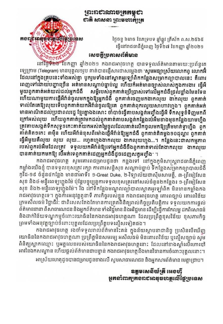 អាស្រ័យហេតុដូចនេះ សូមសាធារណជន និង អ្នកសារព័ត៌មាន មេត្តាជ្រាប៕