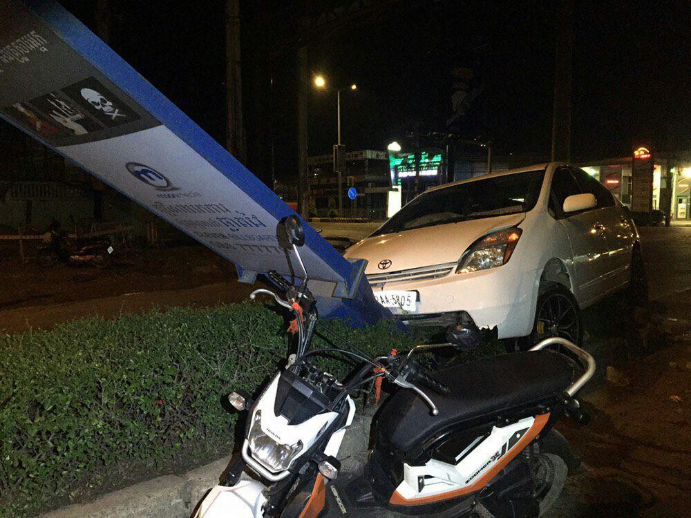 ភ្នំពេញ ៖ មានប្រុសស្រី ២នាក់បានបើករថយន្តម៉ាក ព្រូសយ៉ាងលឿនតាមបណ្ដោយផ្លូវ ២០០៤ដល់ស្តុបណតប្រ៊ីត ក៏រ៉េចង្កូបុកឡើងលើឃឿន ពុះចែកទ្រូងផ្លូវបណ្ដាលឱ្យបាក់ផ្លាកប៉ាណូអស់មួយដើម កាលពី វេលាម៉ោង ២និង ៤០នាទីយប់រំលងអធ្រាត្រឈានចូលថ្ងៃសៅរ៍ ទី ៤ ខែមករា ឆ្នាំ ២០២០ ផិតស្តុបណតប្រ៊ីត តាមបណ្តោយផ្លូវ២០០៤ក្នុងសង្កាត់អូបែកក្អម ខណ្ឌសែនសុខ រាជធានី ភ្នំពេញ ។