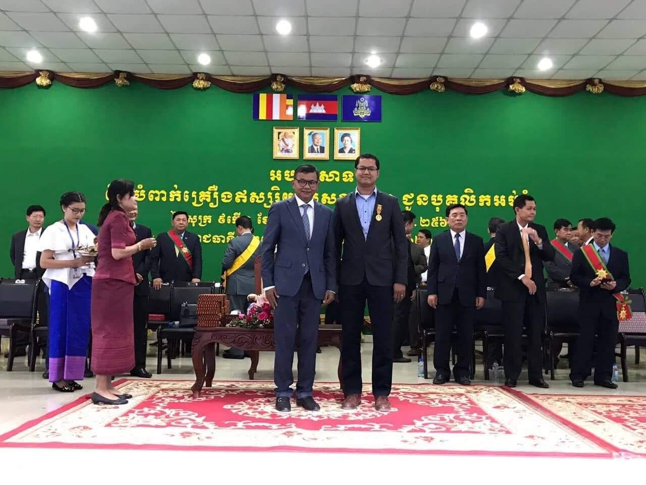 ងារ តាមតួនាទីនិងភារកិច្ចនិងការទទូខុសត្រូវខ្ពស់ប្រកបដោក្រមសីលធម័ មនស្សកាវិជ្ជាជីវៈខ្ពស់ក៍ដូចជាការចូលរួមលើកកម្ពស់ក្នុងវិស័យអប់រំជាពិសេសបានចូលរួមយ៉ាងសកម្មក្នុងការអនុវត្តនៅយុទ្ធសាស្រ្តកំណែទំរង់ស៊ីជំរៅវិស័យអប់រំយុវជននិងកីឡា អោយទទូលបានជោគជ័យនាពេលកន្លងមក។ ដោយមើលឃើញនៅស្នាដៃនិងលទ្ធផលការងារនិងផ្លែផ្កានេៈហើយទើបរាជរដ្ឋាភិបាលកម្ពុជាដែលមានសម្តេចអគ្គមហាសេនាបតីតេជោហ៊ុនសែននាយករដ្ឋមន្រ្តីនៃព្រៈរាជាណាចក្រកម្ពុជា បានសម្រេចផ្តល់គឿងឥស្សរិយសនិងបំពាក់មេដាយការងារ លើក ទឹកចិត្តដែលមានស្នាដៃចំនួនជាង៨០០នាក់ស្រី៤៨១នាក់ ។