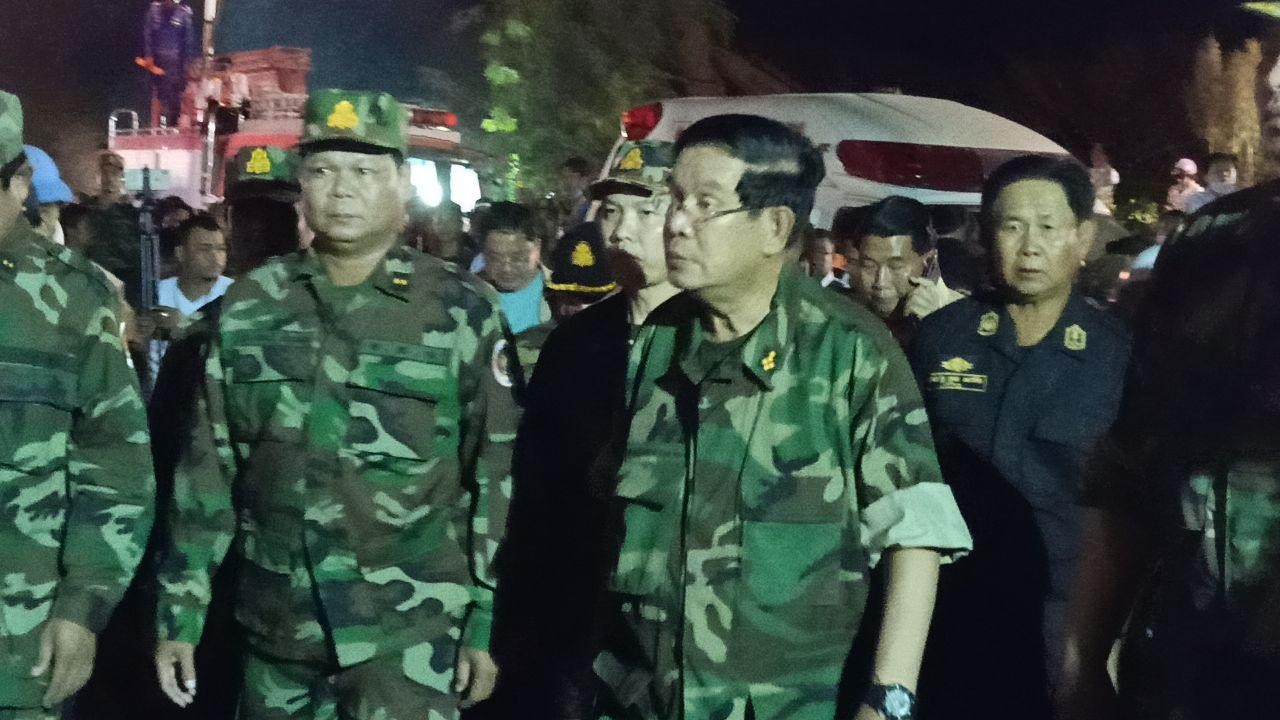 (កែប)៖ នៅវេលាម៉ោង៩៖៥០ យប់ថ្ងៃទី០៣ ខែមករា ឆ្នាំ២០២០នេះ សម្តេចតេជោ ហ៊ុន សែន នាយករដ្ឋមន្រ្តីនៃកម្ពុជា បានអញ្ជើញចុះទៅដល់ទីតាំងបាក់រលំអគារកម្ពស់៧ជាន់ នៅខេត្តកែបហើយ ដើម្បីដឹកនាំប្រតិបត្តិការរុករងជនរងគ្រោះ ដែលជាប់នៅក្នុងគំនរអគារ។