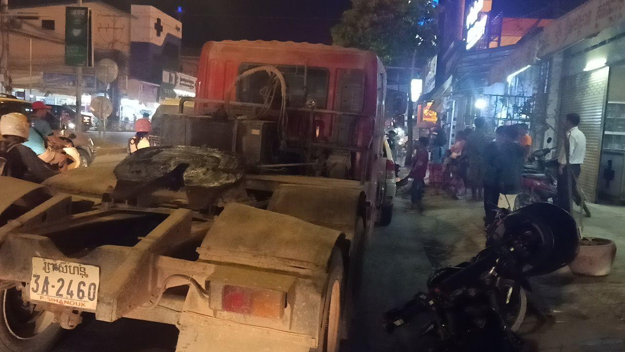 ប្រភពព័ត៌មានសាក្សីនៅកន្លែងកើតហេតុបានឲ្យដឹងថាមុនពេលកើតហេតុឃើញកង់បីឥណ្ឌាមួយគ្រឿងពណ៌សពាក់ស្លាកលេខ 1HU-5683បើកបរដោយបុរសម្នាក់ក្នុងទិសដៅជើងទៅត្បួងស្របជាមួយរថយន្តមួយគ្រឿងទៀតម៉ាករេហ្វ័រពណ៍សពាក់ស្លាកលេខភ្នំពេញ 2AK-3513បើកបរជាលក្ខណៈគ្រួសារមកពីខាងក្រោយលុះមកដល់ចំណុចកើតហេតុខាងលើក៏ឃើញភ្លើងស្តុបសញ្ញាចរាចរណ៍ពណ៌ក្រហមក៏នាំគ្នាឈប់ស្រាប់តែមានរថយន្តកុងតឺន័រមួយគ្រឿងពណ៌ក្រហមពាក់ស្លាកលេខព្រះសីហនុ 3A-2460បើកបរដោយបុរសម្នាក់ក្នុងទិសដៅស្របគ្នាមកពីខាងក្រោយក្នុងល្បឿនលឿនហើយក៏ចាប់ហ្រ្វាំងមិនស៊ីជ្រុលទៅបុករថយន្តហើយរថយន្តនៅខាងមុខបន្តទៅប៉ះកង់បីឥណ្ឌានៅខាងមុខទៀតបណ្ដាលឲ្យរងការខូចខាតយ៉ាងដំណំ