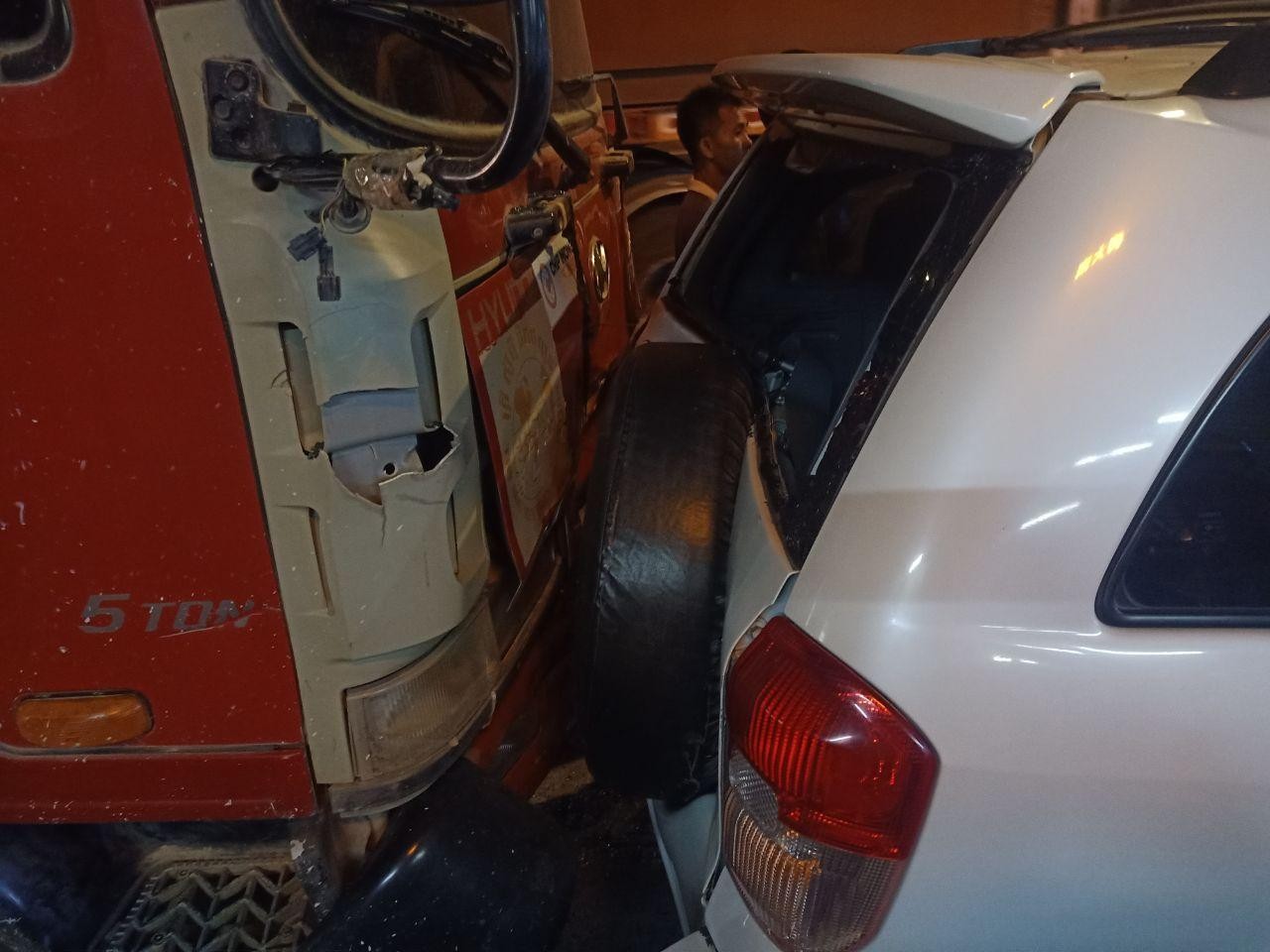 ភ្នំពេញ៖រថយន្តកុងតឺន័របើកលឿនខ្វះការប្រុងប្រយ័ត្នជ្រុលទៅបុករថយន្តនិងកង់បីឥណ្ឌានៅខាងមុខកំពុងឈប់ភ្លើងស្តុបចរាចរណ៍បណ្ដាលឲ្យរងការខូចខាត យ៉ាងដំណំសំណាងល្អគ្មានអ្នករបួស