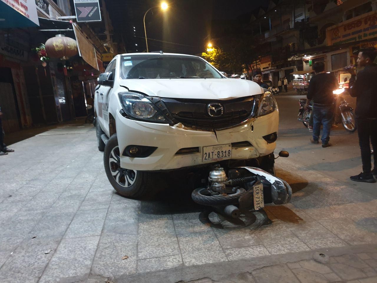 ភ្នំពេញ៖កាលពីវេលាម៉ោងប្រមាណជា ២១និង៥៨នាទីយប់ ថ្ងៃទី០២ ខែមករា ឆ្នាំ២០២០ មានករណីគ្រោះថ្នាក់ចរាចរណ៍មួយបង្កឡើងដោយរថយន្តទំនើបមួយគ្រឿងដែលបើកបរដោយជនជាតិចិនមួយក្រុម បុកពីក្រោយម៉ូតូជនរងគ្រោះអូសជាច្រើនម៉ែត្រ ស្ថិតនៅលើផ្លូវលេខ១៨២ ក្នុងសង្កាត់ផ្សារដេប៉ូទី១ ខណ្ឌទួលគោក រាជធានីភ្នំពេញ។