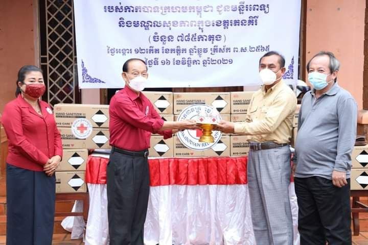 រតនគិរី ៖ នារសៀលថ្ងៃទី១៦ ខែវិច្ឆិកា ឆ្នាំ២០២១ កាកបាទក្រហមកម្ពុជា ដែលមានសម្តេចកិត្តិព្រឹទ្ធបណ្ឌិត ប៊ុន រ៉ានី ហ៊ុនសែន ជាប្រធាន បានប្រគល់ជែលចំនួន ៧៨៥កេស ស្មើនឹង ១៥,៧០០ដប ជូនមន្ទីរពេទ្យបង្អែក និងមណ្ឌលសុខភាពនានាតាមស្រុក ក្នុងខេត្តរតនគិរី ។