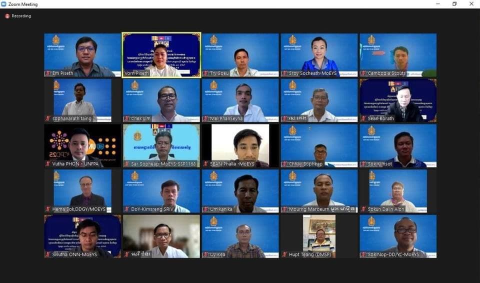 រាជធានីភ្នំពេញ៖ នាយកដ្ឋានផែនការបានរៀបចំសិក្ខាសាលាពិគ្រោះយោបល់ស្ដីពី ”ការពិនិត្យឡើងវិញពាក់កណ្ដាលអាណត្តិនៃការអនុវត្តផែនការយុទ្ធសាស្ត្រវិស័យអប់រំ ២០១៩-២០២៣ សម្រាប់អនុវិស័យ ការអភិវឌ្ឍយុវជន” ក្រោមអធិបតីភាព ឯកឧត្តមបណ្ឌិត ស៊ាន បូរ៉ាត់ រដ្ឋលេខាធិការក្រសួងអប់រំ យុវជន និងកីឡា និងមានការចូលរួមពី ឯកឧត្តម លោកជំទាវ អនុរដ្ឋលេខាធិការ អគ្គនាយក អគ្គនាយករង លោក លោកស្រី ប្រធាន អនុប្រធាននាយកដ្ឋាន ដៃគូអភិវឌ្ឍ និងមន្ត្រីជំនាញសរុប ៧០នាក់ តាមរយៈកម្មវិធី Zoom Meeting ។