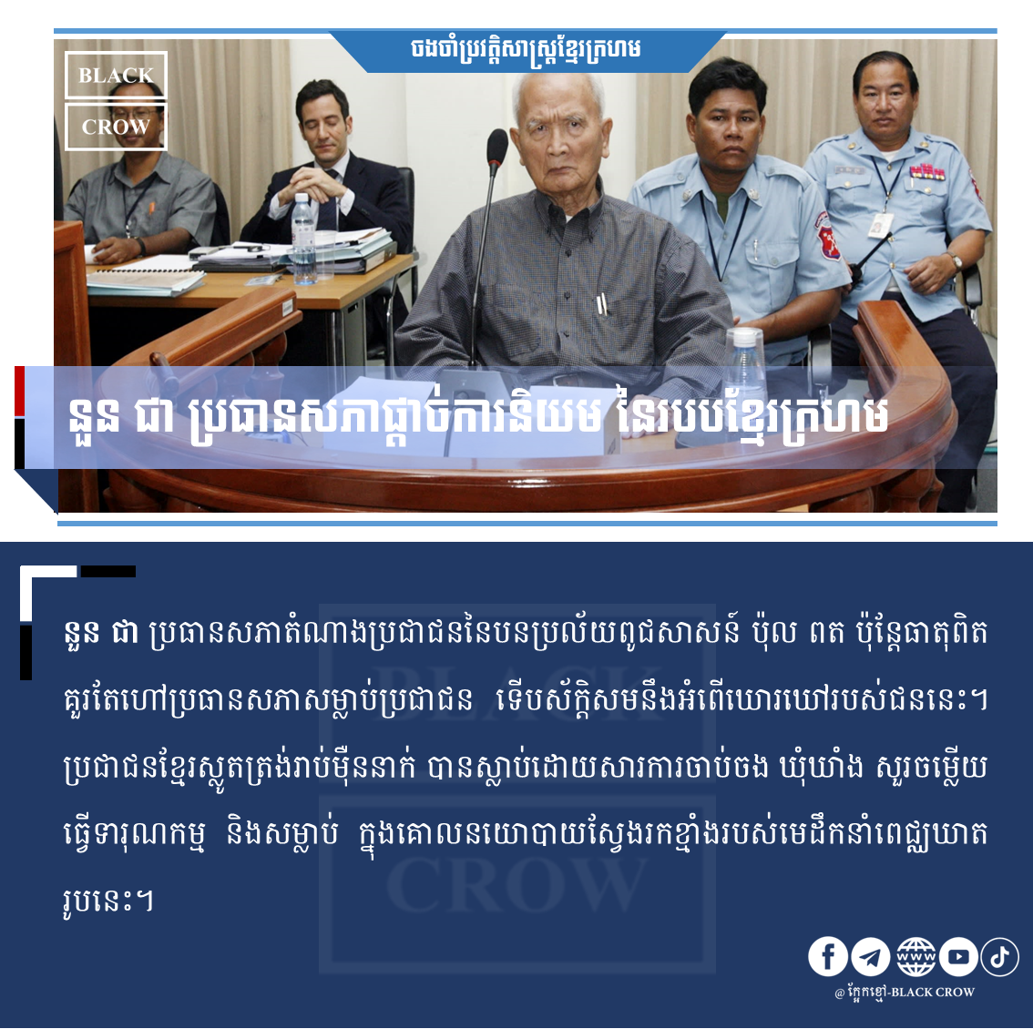 នួន ជា ប្រធានសភាផ្ដាច់ការនិយម នៃរបបខ្មែរក្រហមក្អែកខ្មៅឯកសារសំណេរអត្ថបទដោយ៖លី ប៊ុនហេង - Ly Bunheng #នួនជា #កម្ពុជាប្រជាធិបតេយ្យ #ខ្មែរក្រហម #របបខ្មែរក្រហម #ប្រធានសភា #ផ្ដាច់ការនិយម Facebook Page: Black-Crow Telegram Channel លី ប៊ុនហេង - Ly Bunhengលី ប៊ុនហេង ប្រធានផ្នែកផ្សព្វផ្សាយ នៃសច្ចធម៌ប្រវត្តិសាស្រ្ដអត្ថបទមុនអត្ថបទបន្ទាប់
