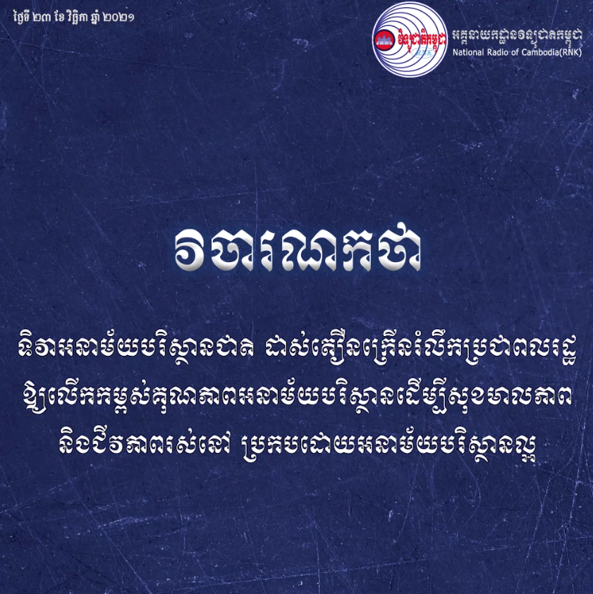 វិចារណកថា៖«ទិវាអនាម័យបរិស្ថានជាតិ ដាស់តឿនក្រើនរំលឹកប្រជាពលរដ្ឋ និងជីវភាពរស់នៅ ប្រកបដោយអនាម័យបរិស្ថានល្អ»