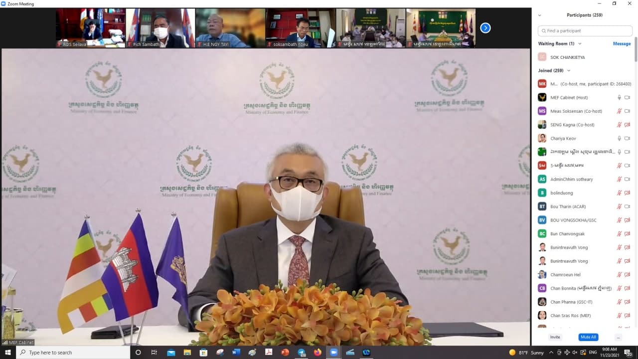 ភ្នំពេញ៖ នាព្រឹកថ្ងៃទី២៣ ខែវិច្ឆិកា ឆ្នាំ២០២១ ឯកឧត្តមអគ្គបណ្ឌិតសភាចារ្យ អូន ព័ន្ធមុនីរ័ត្ន ឧបនាយករដ្ឋមន្ត្រី រដ្ឋមន្ត្រីក្រសួងសេដ្ឋកិច្ច និងហិរញ្ញវត្ថុ និងជាប្រធានគណះកម្មាធិការដឹកនាំការងារ កែទម្រង់ការគ្រប់គ្រងហិរញ្ញវត្ថុ សាធារណៈ (គ.ហ.ស.) បានដឹកនាំកិច្ចប្រជុំ គណះកម្មការកែទម្រង់ការគ្រប់គ្រងហិរញ្ញវត្ថុសាធារណះ ពិភាក្សាអំពី *ការត្រួតពិនិត្យវឌ្ឍនភាព នៃការអនុវត្តកម្មវិធីកែទម្រង់ ការគ្រប់គ្រងហិរញ្ញវត្ថុសាធារណៈ ដំណាក់កាលទី ៣ បូក២ ប្រចាំត្រីមាសទី ៣ ឆ្នាំ ២០២១ ” តាមរយៈប្រព័ន្ធវីដេអូ Zoom ។