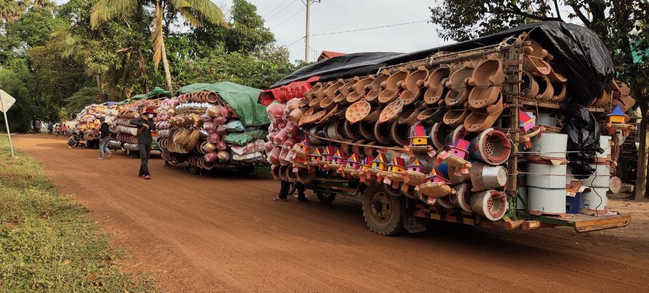 ជាក់ស្ដែងនៅព្រឹក ថ្ងៃទី២៤ ខែ វិច្ឆិកា ឆ្នាំ២០២១ ក្បួនរឺម៉កម៉ូតូ និងរថយន្តកែច្នៃ ដែលមានផ្ទុកក្អមឆ្នាំង និងសម្ភារៈប្រើប្រាស់ ធ្វើអំពីដីជាច្រើនគ្រឿង បានចាប់ផ្ដើមចេញដំណើរទៅកាន់បណ្ដាខេត្តផ្សេងៗដើម្បីលក់ដូរ ដូចដែលពួកគាត់ធ្លាប់បានប្រកបមុខរបរនេះកាលពីពេលមុន។