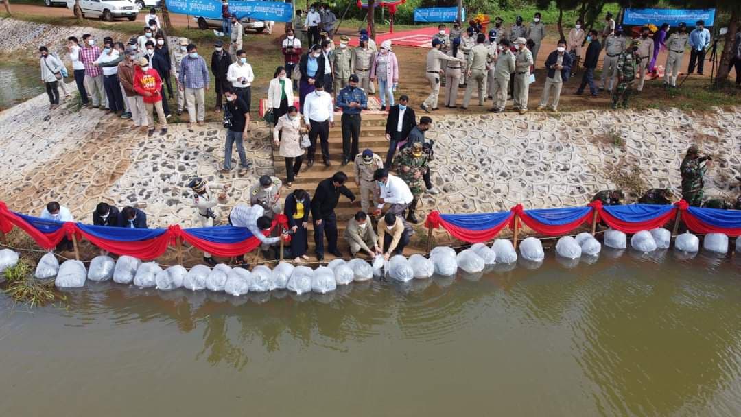 ឯកឧត្តម ម៉ែន ង៉ុយ ប្រធានក្រុមប្រឹក្សាខេត្ត និងឯកឧត្តម ថង សាវុន គណៈអភិបាលខេត្តមណ្ឌលគិរី ព្រមទាំងមន្ត្រីរាជការ កងកម្លាំងប្រដាប់អាវុធទាំង៣ប្រភេទ និងប្រជាពលរដ្ឋ បានអញ្ជើញលែងកូនត្រីពូជត្រីឆ្ពិនចំនួន២ម៉ឺនក្បាល នៅក្នុងអាងស្តុកទឹកទំនប់លើ ស្ថិតនៅក្នុងភូមិដោះក្រមុំ សង្កាត់សុខដុម ក្រុងសែនមនោរម្យ នាព្រឹកថ្ងៃទី ២៤ ខែវិច្ឆិកា ឆ្នាំ២០២១ ដែលរៀបចំដោយ ខណ្ឌរដ្ឋបាលជលផល នៃមន្ទីរកសិកម្មរុក្ខាប្រមាញ់ និងនេសាទខេត្ត។