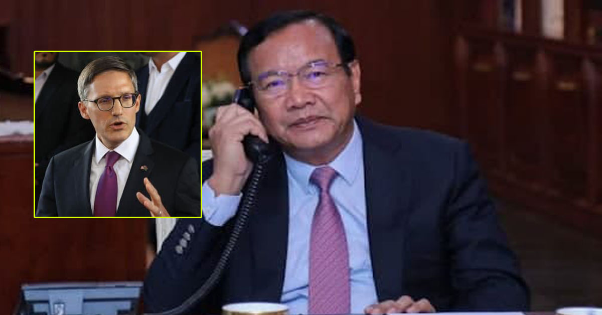 ភ្នំពេញៈកិច្ចសន្ទនាតាមទូរស័ព្ទមួយបានកើតឡើងរវាងឯកឧត្តម ប្រាក់ សុខុន ឧបនាយករដ្ឋមន្ត្រី រដ្ឋមន្ត្រីការបរទេស និងសហប្រតិបត្តិការអន្តរជាតិកម្ពុជាជាមួយ ឯកឧត្តម Derek Chollet ទីប្រឹក្សានៃក្រសួងការបរទេសសហរដ្ឋអាមេរិក កាលពីថ្ងៃទី ២៣ ខែវិច្ឆិកា ឆ្នាំ២០២១ ម្សិលមិញ។