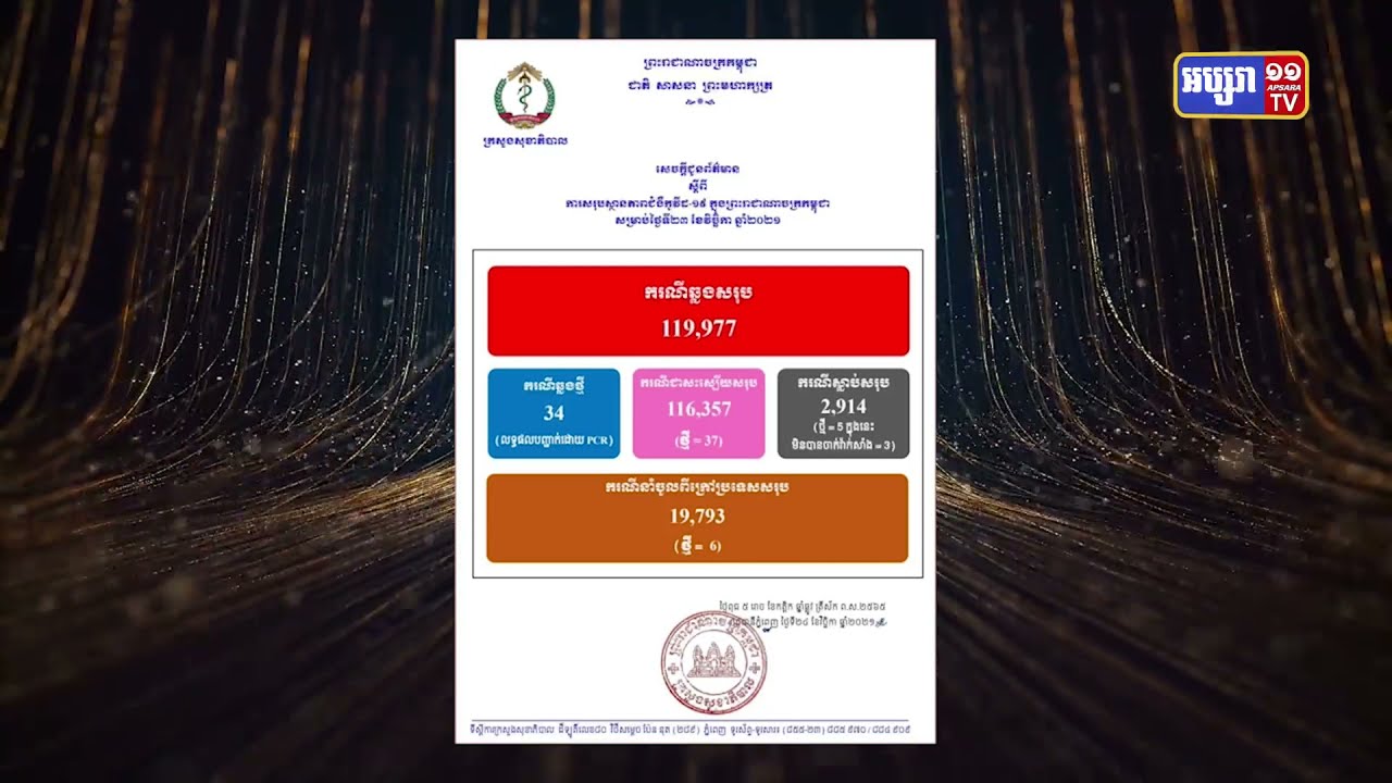 រយៈពេល២៤ម៉ោង កម្ពុជាឆ្លងកូវីដចំនួន៣៤ករណី (Video Inside)