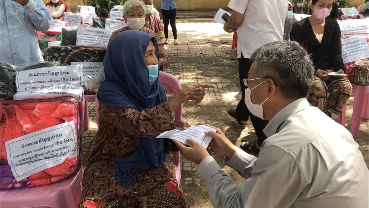 អំណោយ របស់ សម្ដេច តេ ជោ ហ៊ុន សែន និង សម្ដេច កិត្តិ ព្រឹទ្ធ បណ្ឌិត ត្រូវ បាន លោក ចេ ង មុនី រ៉ា អភិបាល ខណ្ឌ ច្បារ អំពៅ រៀបចំ ពិធី ប្រគល់ ជូន ពួក គាត់ នៅ ព្រឹក ថ្ងៃ ទី ០២ ខែធ្នូ ឆ្នាំ ២០២១ នេះ រួម មាន ម្នាក់ ៗ ទទួល បាន ថវិកា ចំនួន ៥០,០០០ រៀល និង ឃិ ត មួយ កញ្ចប់ ក្នុង នោះ មាន ភួយ ០១, អាវ រងា ០១ និង ក្រមា ០១ ។