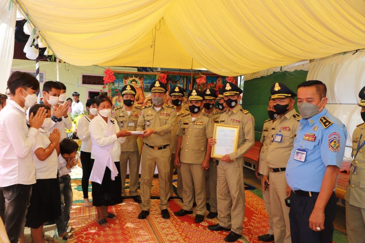 ក្នុងឱកាសនោះលោកឧត្តមសេនីយ៍ទោ ស្នងការ បានសំណេះសំណាលជាមួយក្រុមគ្រួសារសព និងសំដែងនូវការអាឡោះអាល័យ សោកស្តាយជាពន់ពេក ចំពោះការបាត់បង់ស្វាមី ឪពុកដ៏ល្អ ដែលបានបម្រើប្រទេសជាតិ មាតុភូមិកន្លងមក មានស្នាដៃល្អ និងបានពាំនាំនូវប្រសាសន៍ផ្ដាំផ្ញើចូលរួមរំលែកទុក្ខ ពីសំណាក់សម្តេចក្រឡាហោម ស ខេង ឧបនាយករដ្ឋមន្រ្តី រដ្ឋមន្រ្តីក្រសួងមហាផ្ទៃ និងជាប្រធានកិត្តិយសសមាគមមិត្តនគរបាលជាតិកម្ពុជា ឯកឧត្តម នាយឧត្តមសេនីយ៍ សន្តិបណ្ឌិត នេត សាវឿន អគ្គស្នងការនគរបាលជាតិ និងជាប្រធានគណៈកម្មាធិការកណ្ដាលសមាគមមិត្តនគរបាលជាតិកម្ពុជាផងដែរ ៕