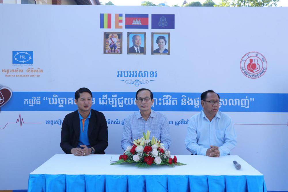 លោក កៅ គីវុធ នាយកសាខា ហត្ថាកសិករ ប្រចាំខេត្តសៀមរាប លើកឡើងថា នេះគឺជាការចូលរួមមួយក្នុងសកម្ម ភាពសង្គម របស់ហត្ថកសិករ ក្រោមប្រធានបទ ផ្តល់ឈាមដើម្បីជួយសង្គ្រោះជីវិតមនុស្ស និ ងផ្តល់សេចក្តីស្រឡាញ់ ។ មានប្រាក់មិនអាចទិញជីវិតមនុស្សបានទេ តែឈាមអាចជួយសង្គ្រោះជីវិតមនុស្សបាន ហើយការផ្តល់ឈាម គ្មានកត្តាណាមួយដែលត្រូវព្រួយបារម្ភនោះឡើយ តែឈាមដែលមិនអាចផ្តល់បាន ឬឈាមដែលគ្រូពេទ្យបដិសេធមិនទទួលយកនោះទេ ដែលជាកត្តាត្រូវព្រួយបារម្ភនោះ ។ លោកក៏បានគូសបញ្ជាក់ថា នេះជាលើកទី៦ហើយ ដែលគ្រឹះស្ថានមីក្រូហិរញ្ញវត្ថុ ហត្ថាកសិករ លីមីតធីត ទូទាំងប្រទេស ហើយក៏ជាលើកទី១ របស់សាខាខេត្តសៀមរាប នៃការបរិច្ចាគឈាមដើម្បីជួយសង្គ្រោះជីវិត ។