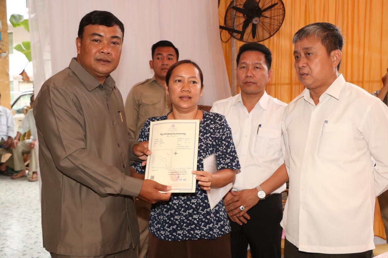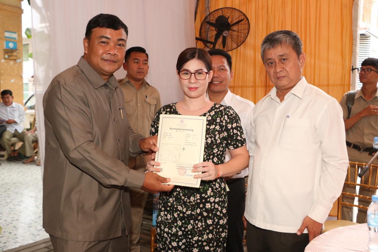 ក្បាលដីពលរដ្ឋ១០៩គ្រួសារ នៅបុរីពិភពថ្មី ច្រាំងចំរេះទី២ ខណ្ឌឫស្សីកែវ ទទួលប័ណ្ណកម្មសិទ្ធិស្របច្បាប់ ពីតំណាងអភិបាលរាជធានីភ្នំពេញ