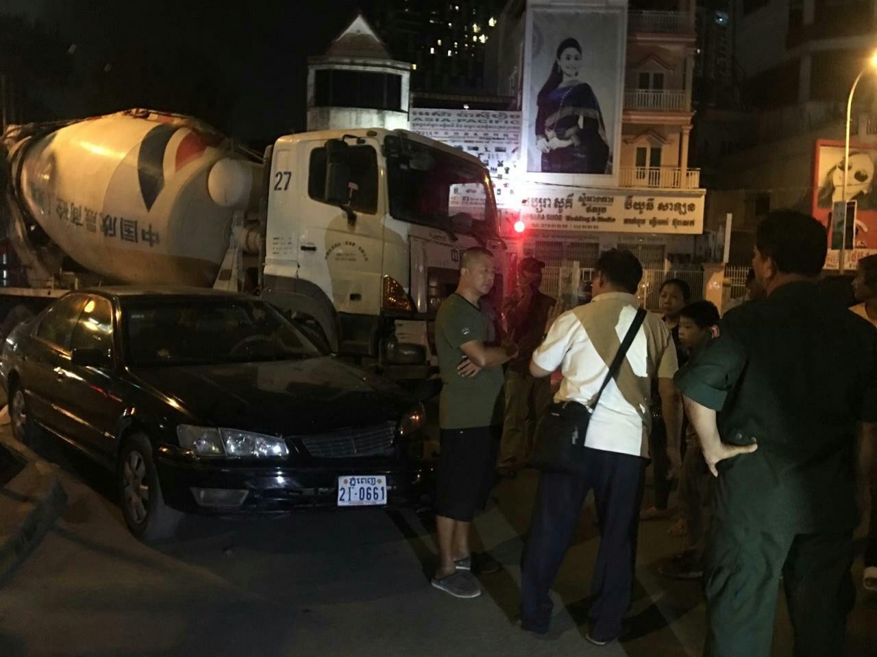 (ភ្នំពេញ) រថយន្តក្រឡុកស៊ីម៉ងមួយគ្រឿងបានបត់ស្តាំនៅស្ទប់ផ្សារដើមថ្កូវរួច ជ្រុលទៅប៉ះរថយន្តឆ្លាមមួយគ្រឿងទៀតបណ្ដាលឲ្យរងការខូចខាត បង្ករការភ្ញាក់ផ្អើលដល់ប្រជាពលរដ្ឋកាលពីវេលាម៉ោង១១ និង១០នាទីយប់ ថ្ងៃទី២០ ខែធ្នូ ឆ្នាំ២០១៩ ស្ថិតនៅផ្លូវ២៧១ សង្កាត់ផ្សារដើមថ្កូវ ខណ្ឌចំការមន រាជធានីភ្នំពេញ ។