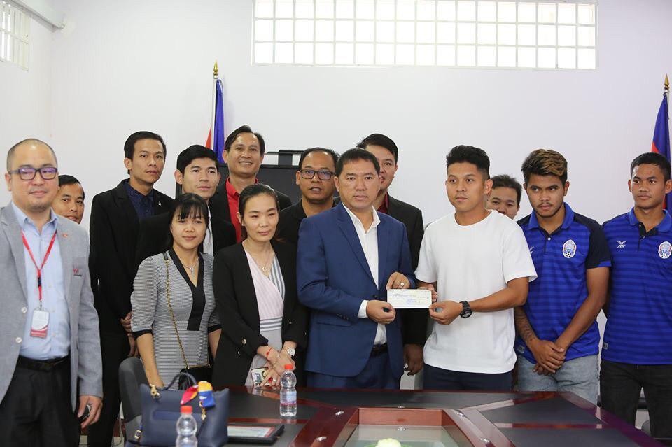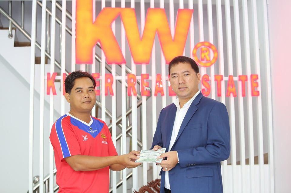 ប្រធានក្រុមហ៊ុន KW Cambodia ប្រគល់ប្រាក់រង្វាន់លើកទឹកចិត្តជូនដល់ក្រុមបាល់ទាត់ ដែលចូលរួមប្រកួតស៊ីហ្គេម នៅហ្វីលីពីន