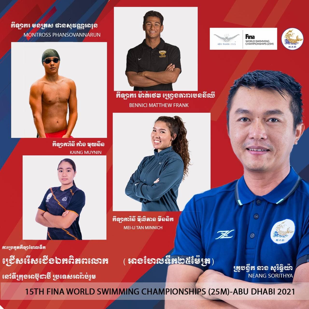 កីឡាករ កីឡាការិនី ហែលទឹក៤រូប និងគ្របង្វឹក១រូប នឹងចេញទៅប្រកួតជ្រើសរើសជើងឯកពិភពលោក (អាងហែលទឹក២៥ ម៉ែត្រ) នៅទីក្រុងអាប៊ូដាប៊ី