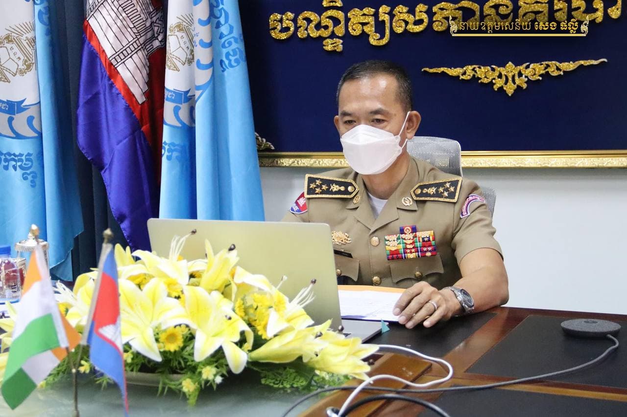 ដីឥដ្ឋ៖ រសៀលថ្ងៃទី១៤ ខែធ្នូ ឆ្នាំ២០២១នេះ ឯកឧត្ដម នាយឧត្ដមសេនីយ៍ សាស្ត្រាចារ្យ សេង ផល្លី ប្រធានបណ្ឌិត្យសភានគរបាលកម្ពុជា និង លោកជំទាវ Dr. Devyani Uttam Khobragade ឯកអគ្គរដ្ឋទូតសាធារណរដ្ឋឥណ្ឌាប្រចាំកម្ពុជា បានអញ្ជើញធ្វើជាសហប្រធានគណៈអធិបតីក្នុងពិធីបិទវគ្គបណ្តុះបណ្តាលជំនាញប្រយុទ្ធប្រឆាំងភេរវកម្ម និងគោលនយោបាយសន្តិសុខបច្ចេកវិជ្ជា ដល់និស្សិតថ្នាក់បណ្ឌិតវិទ្យាសាស្ត្រនគរបាល ជំនាន់ទី១ នៃបណ្ឌិត្យសភានគរបាលកម្ពុជា ក្រោមកិច្ចសហការរៀបចំការបណ្ដុះបណ្ដាលដោយ អគ្គនាយកដ្ឋានស្រាវជ្រាវនិងអភិវឌ្ឍនគរបាល(BPR&D) និងបណ្ឌិត្យសភានគរបាលកម្ពុជា ដោយមានការអញ្ជើញចូលរួមពី ឯកឧត្តម Shri Neeraj Sinha អគ្គនាយកនៃអគ្គនាយកដ្ឋានស្រាវជ្រាវអភិវឌ្ឍនគរបាល និងលោក Shri B S Jaiswal ប្រធាននាយកដ្ឋានបណ្តុះបណ្តាលនៃ BPR&D ព្រមទាំងនិស្សិតថ្នាក់បណ្ឌិតទាំង១៣រូប តាមប្រព័ន្ធអនឡាញ។ដោយ-រ៉ាវុធ