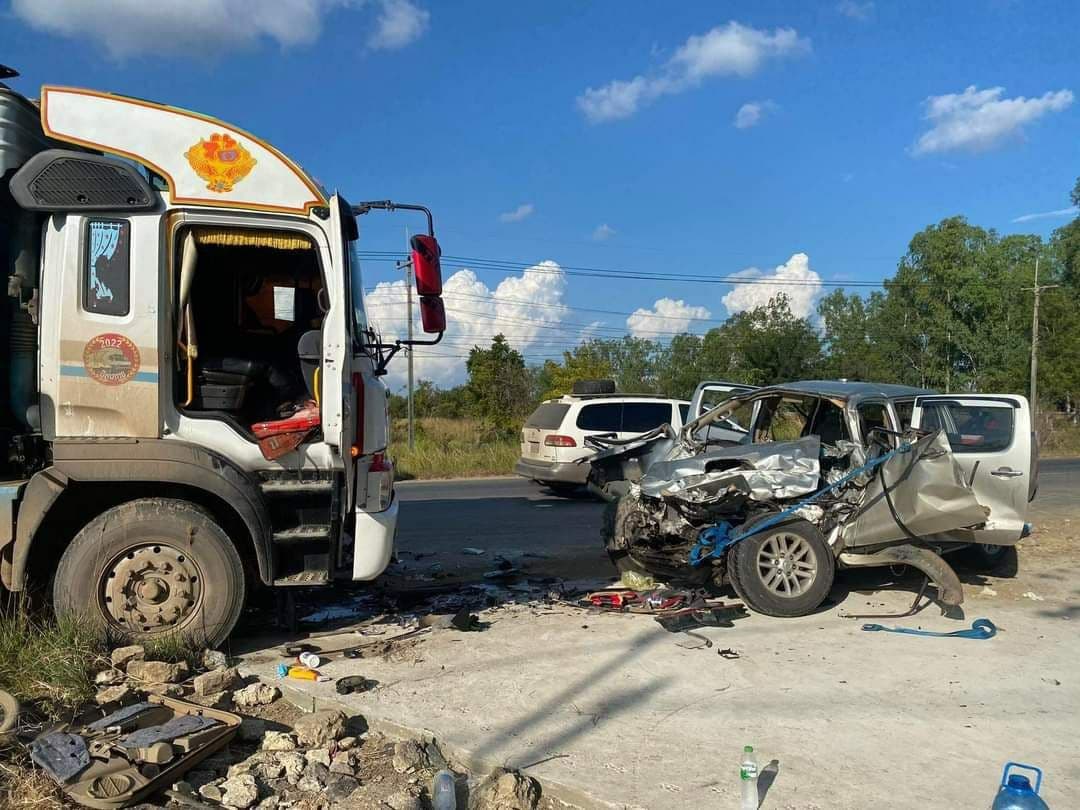ស្លាប់ម្នាក់ របួសធ្ងន់៣ នាក់ក្នុងករណីរថយន្តធំដឹកត្រីបុកពេញទំហឹងរថយន្តភីកអាប់តូយ៉ូតានៅក្រុងប៉ោយប៉ែត