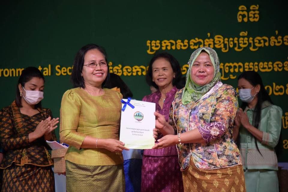 លោកជំទាវ ស៊ីវណ្ណ បុទុម រដ្ឋលេខាធិការ និងជាតំណាងដ៏ខ្ពង់ខ្ពស់លោកជំទាវគតិបណ្ឌិត អឹុង កន្ថាផាវី រដ្ឋមន្រ្តីក្រសួងកិច្ចការនារី បានមានប្រសាសន៍ថា រាជរដ្ឋាភិបាលយល់ច្បាស់ពីសារសំខាន់នៃការលើកកម្ពស់ការយល់ដឹងដល់ស្ត្រី និងការចូលរួមរបស់ស្ត្រីក្នុងគ្រប់វិស័យ ជាពិសេសការជំរុញលើកទឹកចិត្តស្ត្រីថ្នាក់ដឹកនាំក្នុងវិស័យសាធារណៈ និងនយោបាយ ការលុបបំបាត់អំពើហិង្សា និងការទប់ស្កាត់ការរំលោភបំពានផ្លូវភេទលើស្ត្រី ព្រមទាំងការបង្កើននូវកាលានុវត្តភាពនានាដល់ស្ត្រីពិតជាមានសារៈសំខាន់ និងចាំបាច់បំផុតក្នុងគោលដៅអភិវឌ្ឍសង្គម-សេដ្ឋកិច្ចប្រកបដោយចីរភាព និងបរិយាប័ន្ន”។ ក្រសួងកិច្ចការនារី បានសហការជាមួយ ក្រសួង-ស្ថាប័នពាក់ព័ន្ធអនុវត្តលើការងារលើកកម្ពស់សមភាពយេនឌ័រ និង ផ្តល់ភាពអង់អាចដល់ស្រ្តី រួមទាំងការទប់ស្កាត់អំពើហិង្សាលើស្រ្តីនិងក្មេងស្រី ដោយមានការគាំទ្រពីអង្គការជាតិ អន្តរជាតិ ព្រមទាំងដៃគូ អភិវឌ្ឍន៍នានា និងទទួលបានលទ្ធផលវិជ្ជមានគួរឱ្យ កត់សម្គាល់នាឆ្នាំកន្លងមក ទោះបីជាយើងស្ថិតក្នុងកំឡុងពេលនៃវិបត្តិកូវីដ១៩។ យើងនៅតែបន្តអនុវត្តគោលនយោបាយ សមភាពយេនឌ័ររបស់រាជរដ្ឋាភិបាល សំដៅធ្វើយ៉ាងណាដើម្បីធានាលើកកម្ពស់ការ ចូលរួមរបស់ស្រ្តីក្នុងគ្រប់វិស័យ។សមិទ្ធផលនាថ្ងៃនេះ បានស្តែងចេញនូវកិច្ចខិតខំប្រឹងប្រែងបញ្រ្ជាបយេនឌ័រ ក្នុងវិស័យបរិស្ថាន ដែលនេះជាឯកសារគោលនយោបាយដ៏សំខាន់សម្រាប់ក្រសួងបរិស្ថាន និងក្រសួង-ស្ថាប័ន ពាក់ព័ន្ធព្រមទាំងដៃគូអភិវឌ្ឍន៍ ដើម្បីយកទៅអនុវត្តសកម្មភាពលើកកម្ពស់តួនាទីយេនឌ័រក្នុងវិស័យបរិស្ថាន ឱ្យបានទូលំទូលាយ និងប្រកបដោយលទ្ធផលល្អប្រសើរ។
