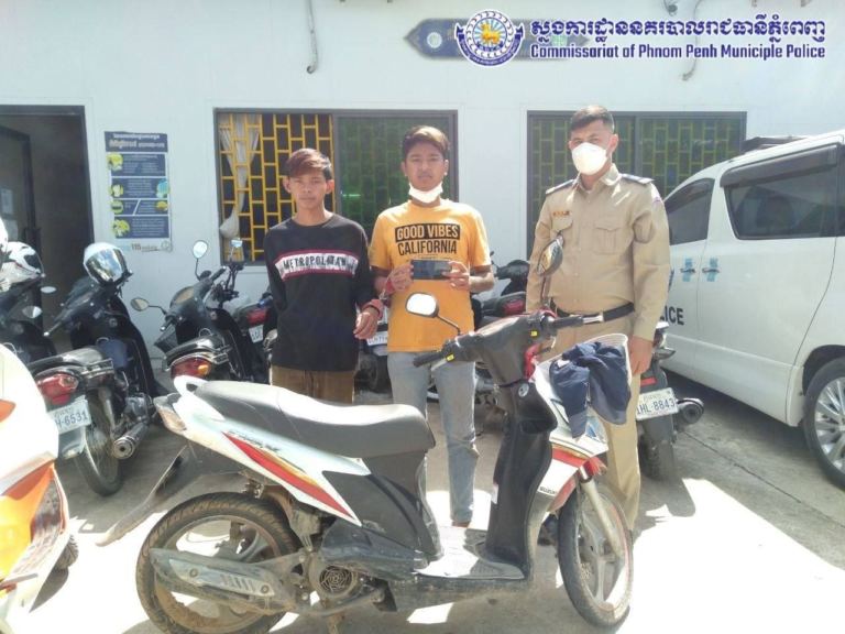 កម្លាំងការិយាល័យនគរបាលព្រហ្មទណ្ឌកំរិតស្រាល នៃស្នងការដ្ឋាននគរបាលរាជធានីភ្នំពេញ បានឃាត់ខ្លួន ជនសង្ស័យចំនួន ០២នាក់ កាលពីវេលាម៉ោង១៥និង៤០នាទីថ្ងៃទី២៨ ខែធ្នូ ឆ្នាំ២០២១ នៅចំណុចមុខការដ្ឋានបុរីអេលិច ផ្លូវលេខ១០៥កា ភូមិវិមានទ្រង់ សង្កាត់ក្រាំងធ្នង់ ខណ្ឌសែនសុខ រាជធានីភ្នំពេញ ពាក់ពន្ធ័ឆក់ទូរសព្ទ័ដៃ ។