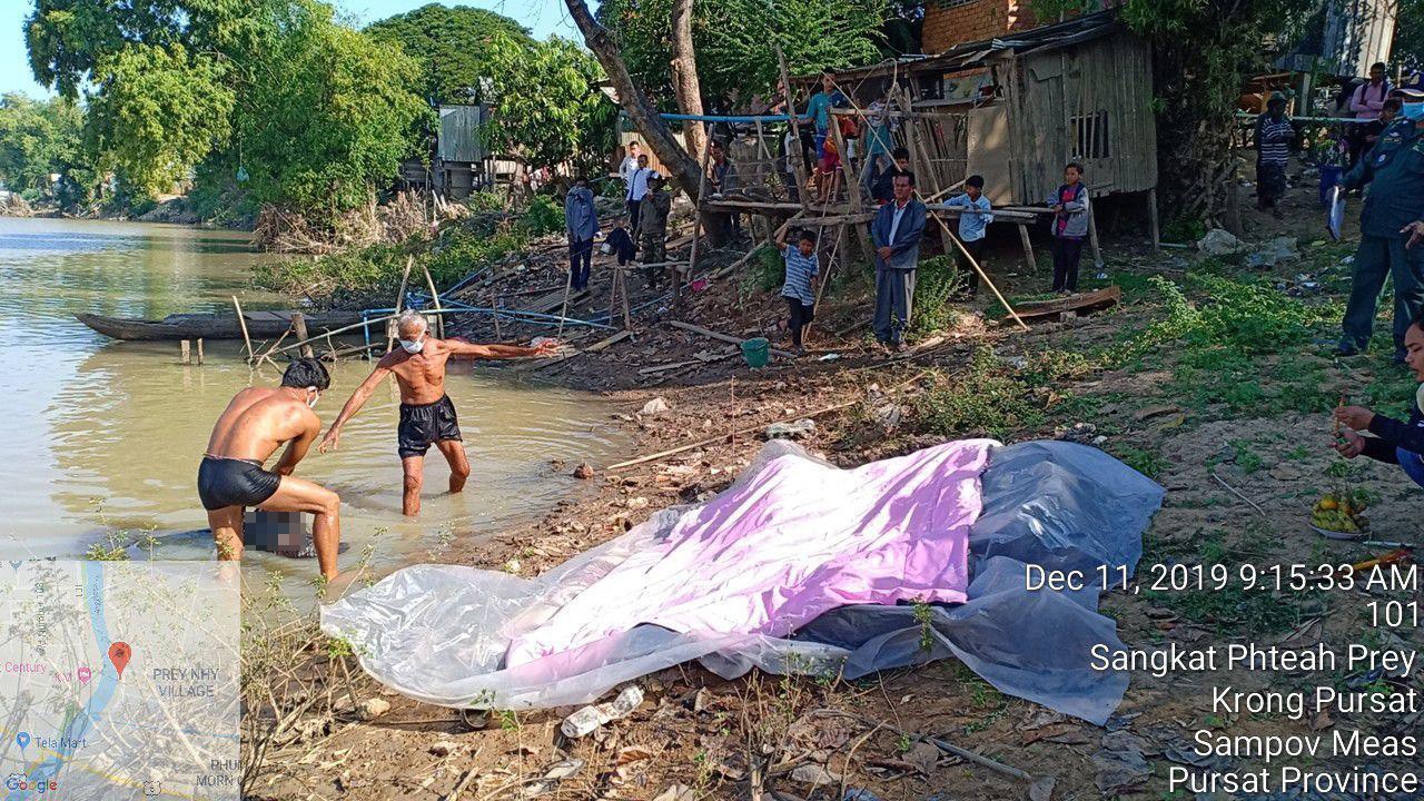 ខេត្តពោធិ៍សាត់៖ នារីដែលលោតទឹកសម្លាប់ខ្លួនកាលពី៤៨ម៉ោងកន្លងមកនោះ ឥឡូវត្រូវបានគេប្រទះឃើញសាកសពអណ្ដែតហើយ ដែលមានចម្ងាយប្រមាណ៥០០ម៉ែត្រពីកន្លែងកើតហេតុ នៅចំណុចមាត់ស្ទឹងពោធិ៍សាត់ក្បែទូកក្រោយផ្ទះប្រជាពលរដ្ឋ ស្ថិតក្នុងភូមិបាក់រទេះ សង្កាត់ព្រញី ក្រុង.ខេត្តពោធិ៍សាត់ នាព្រឹកថ្ងៃទី១១ ខែធ្នូ ឆ្នាំ២០១៩ នេះ ។