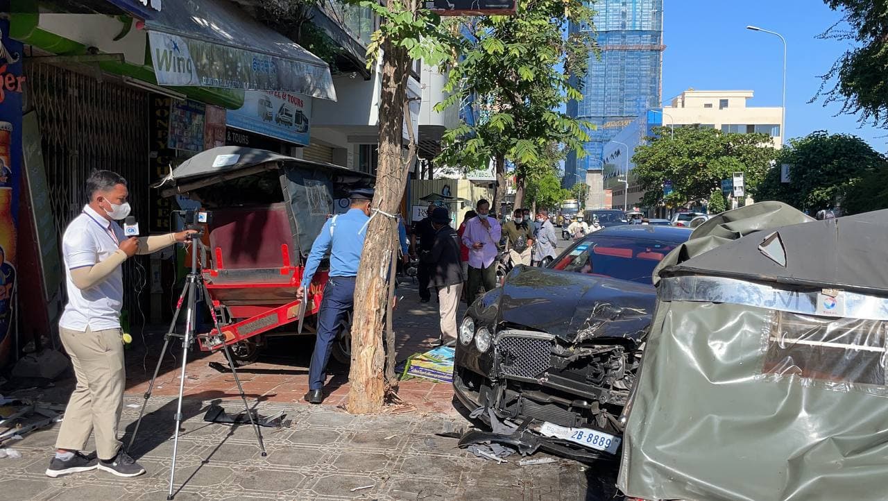 ភ្នំពេញ៖ បុរសជនជាតិចិននិងមានស្ត្រីម្នាក់ជាជនជាតិដូចគ្នារួមដំណើរផងនោះ បានបើករថយន្តសេរីទំនើប ម៉ាក BENTLEY FLYING SPUR ក្នុងល្បឿនលឿនជ្រុលចង្កូតទៅបុករះរុឺម៉កម៉ូតូកង់បីដែលចតនៅមុខផ្ទះបងប្អូនប្រជាពលរដ្ឋ បណ្ដាលឱ្យខូចខាតទ្វារផ្ទះនិងរុឺម៉កម៉ូតូកង់បី បណ្តាលឱ្យមនុស្ស២នាក់រងរបួស បង្កការភ្ញាក់ផ្អេីលកាលពីវេលាម៉ោង០៨ព្រឹកថ្ងៃទី០២ ខែមករា ឆ្នាំ២០២២ ស្ថិតនៅចំណុចមុខផ្សាររាត្រី តាមបណ្ដោយផ្លូវព្រះស៊ីសុវត្ថិ ក្នុងមូលដ្ឋានសង្កាត់វត្តភ្នំ ខណ្ឌដូនពេញ រាជធានីភ្នំពេញ។