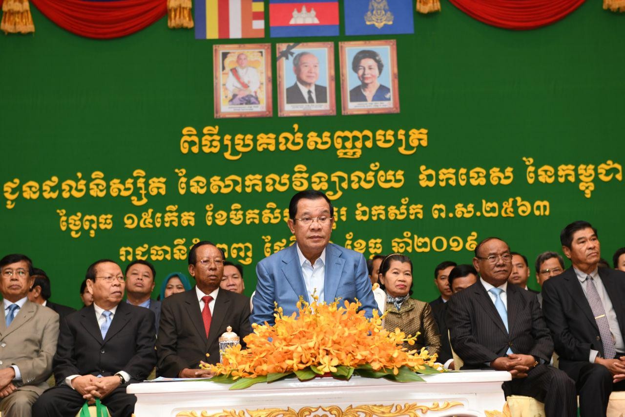 សម្ដេចតេជោ ហ៊ុន សែន អញ្ជើញចែកសញ្ញាបត្រដល់និស្សិតសាកលវិទ្យាល័យឯកទេសនៃកម្ពុជា (CUS) ជិត៧ពាន់នាក់