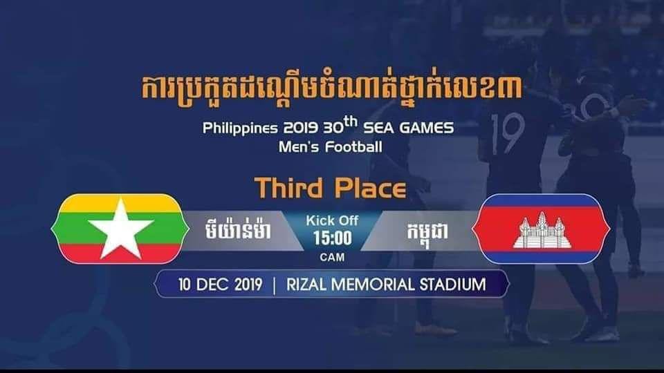 ភ្នំពេញ៖ នៅវេលាម៉ោង៣រសៀលថ្ងៃទី១០ ខែធ្នូ ឆ្នាំ២០១៩ស្អែកនេះ រដ្ឋបាលរាជធានីភ្នំពេញ នឹងធ្វើការចាក់ស្លាយផ្សាយបន្តផ្ទាល់ពីការប្រកួតបាល់ទាត់ រវាងកម្ពុជា និងមីយ៉ាន់ម៉ា ដណ្ដើមមេដាយសំរឹទ្ធ SEA Games 2019 នៅសួនច្បារមុខវត្តបទុមវតី និងមុខណាហ្គាវើល សួនច្បារសម្ដេចតេជោ ហ៊ុន សែន។