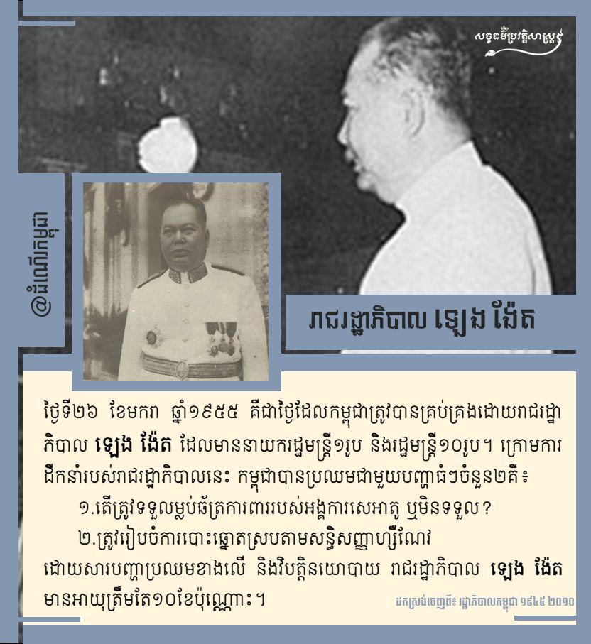 ជាការពិត ទម្រាំកម្ពុជាមានសុខសន្តិភាព ស្ថេរភាព ការឯកភាពជាតិ និងភាពរីកចម្រើនដូចពេលនេះ កម្ពុជាធ្លាប់ឆ្លងកាត់របប និងរាជរដ្ឋាភិបាលជាច្រើន។ ជាក់ស្តែង ថ្ងៃនេះកាលពី ៦៧ ឆ្នាំមុន កម្ពុជាស្ថិតក្រោមការដឹកនាំរបស់លោកនាយករដ្ឋមន្ត្រី ឡេង ង៉ែត និងរដ្ឋមន្ត្រី ១០ រូប ផ្សេងទៀត។ បើប្រៀបធៀបរបបដឹកនាំរបស់លោក ឡេង ង៉ែត ឃើញថាល្អប្រសើរជាង របបប្រល័យពូជសាសន៍ ប៉ុល ពត ចុះហេតអ្វីរាជរដ្ឋាភិបាលនេះមានអាយុត្រឹមតែ១០ខែ?