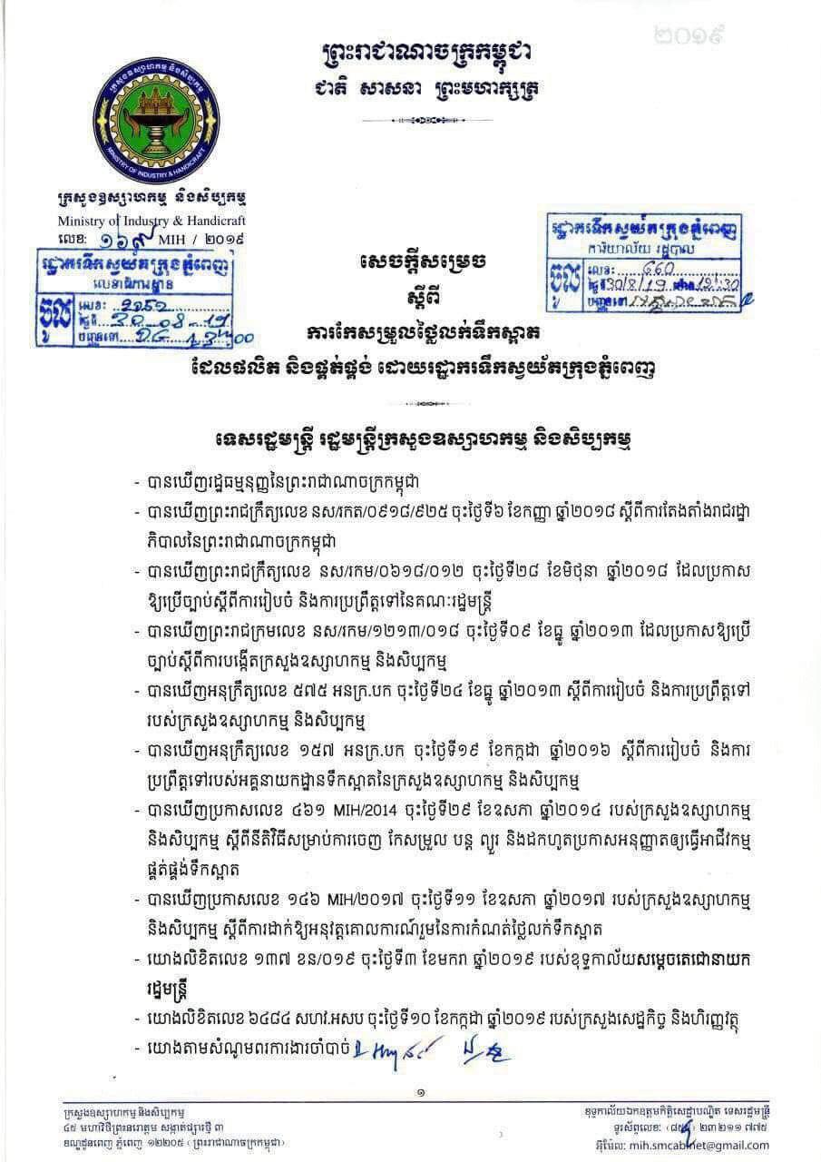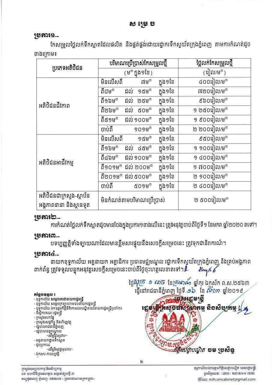 សេចក្តីសម្រេចស្តីពីការកែសម្រួលថ្លៃលក់ទឹកស្អាតដែលផលិត និងផ្គត់ផ្គង់ដោយរដ្ឋាករទឹកស្វយ័តក្រុងភ្នំពេញព័ត៌មានអត្ថបទដោយ៖Kien Sereyvuth Kien SereyvuthIT Technical Supportអត្ថបទមុនអត្ថបទបន្ទាប់