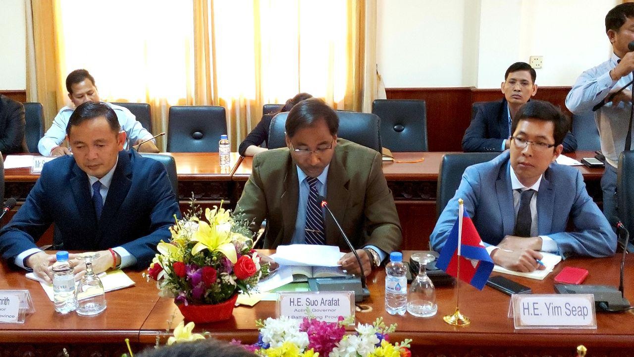 នៅក្នុងកិច្ចជំនួបនេះ លោក ស៊ូ អារ៉ាហ្វាត់អភិបាលស្តីទី នៃ គណៈអភិបាលខេត្តបាត់ដំបងបានថ្លែងនូវការស្វាគមន៍ ចំពោះវត្តមានគណៈប្រតិភូខេត្តត្រាត (ថៃ) ដែលដឹកនាំដោយ ឯកឧត្តម ភិឆៀន លឹមវ៉ាងយូ ដើម្បីស្វែងយល់អំពីសក្តានុពលសេដ្ឋកិច្ចដែលខេត្តបាត់ដំបងមាន។តាមរយៈនៃកិច្ចជំនួបនេះផងដែរ ក្នុងនាមរដ្ឋបាលខេត្តនិង