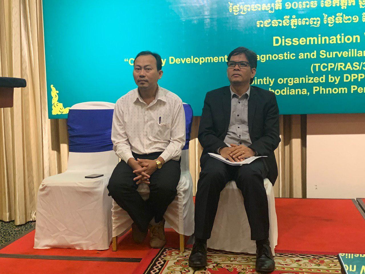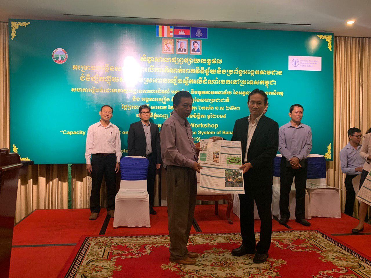 នៅសណ្ឋាគារកំាបូឌីយ៉ាណា ព្រឹកថ្ងៃទី២១ ខែវិច្ឆការ ឆ្នំា២០១៩ មានរៀបចំសិក្ខាសាលាផ្សព្វផ្សាយលទ្ធផលគម្រោងបង្កើនសមត្ថភាពលើការកំណត់រោគវិនិច្ឆ័យ និងប្រព័ន្ធអង្កេតតាមដានជំងឺផ្សិត ហ៊្វុយសារីយ៉ូមស្រពោនលឿងស្លឹក លើដំណាំចេកនៅប្រទេសកម្ពុជា ក្រោមការចូលរួមពីឯកឧត្តម បណ្ឌិត ងិន ឆាយ ប្រតិភូរាជរដ្ឋាភិបាលកម្ពុជាទទួលបន្ទុកជាអគ្គនាយក នៃអគ្គនាយកដ្ឋានកសិកម្ម និងលោក អ៊ុ កុសល តំណាងអង្គការស្បៀង និងកសិកម្ម នៃសហប្រជាតិ។