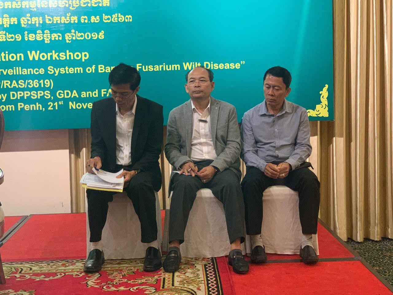 នៅសណ្ឋាគារកំាបូឌីយ៉ាណា ព្រឹកថ្ងៃទី២១ ខែវិច្ឆកា ឆ្នំា២០១៩ មានរៀបចំសិក្ខាសាលាផ្សព្វផ្សាយលទ្ធផលគម្រោងបង្កើនសមត្ថភាពលើការកំណត់រោគវិនិច្ឆ័យ និងប្រព័ន្ធអង្កេតតាមដានជំងឺផ្សិត ហ៊្វុយសារីយ៉ូមស្រពោនលឿងស្លឹក លើដំណាំចេកនៅប្រទេសកម្ពុជា ក្រោមការចូលរួមពីឯកឧត្តមបណ្ឌិត ងិន ឆាយ ប្រតិភូរាជរដ្ឋាភិបាលកម្ពុជាទទួលបន្ទុកជាអគ្គនាយក នៃអគ្គនាយកដ្ឋានកសិកម្ម និងលោក អ៊ុ កុសល តំណាងអង្គការស្បៀង និងកសិកម្ម នៃសហប្រជាតិ។