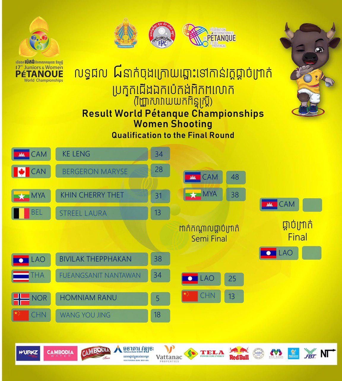 វីរ:កីឡាការិនី កែ ឡេង ត្រូវជួបជាមួយ កីឡាការិនី ឡាវ ដណ្តើមមេដាយមាស ក្នុងការប្រកួតកីឡាប៉េតង់ជើងឯកពិភពលោក នៅវេលាម៉ោង ១៣:៣០ រសៀលនេះនៅពហុកីឡដ្ឋានជាតិ