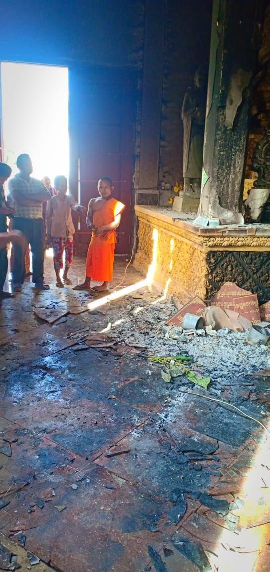 សង្ស័យទុស្សេ ខ្សែភ្លើងក្នុងព្រះវិហារវត្តអង្គញ់ ស្រុករមាសហែកបណ្តាលឲ្យឆេះសម្ភារមួយចំនួន