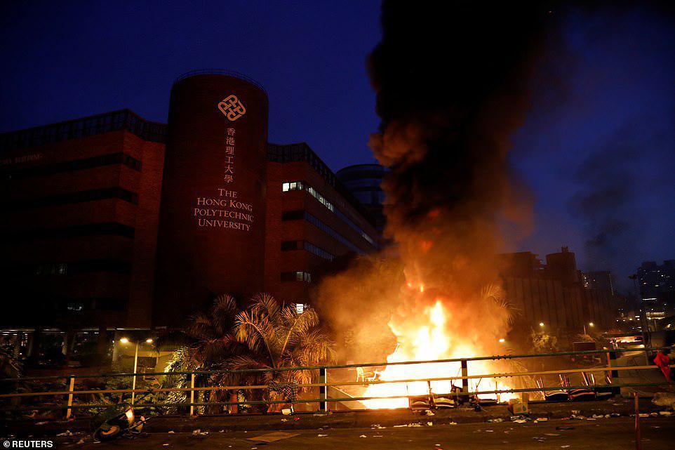 តួយ៉ាង សាកលវិទ្យាល័យ PolyU ត្រូវបានក្រុមបាតុករហុងកុងចូលកាន់កាប់តាំងតែពីថ្ងៃអាទិត្យសប្តាហ៍មុន ហើយប៉ូលិសហុងកុងបានព្យាយាមសម្រុកចូលអស់រយៈពេល០៣ថ្ងៃជាប់គ្នាមកហើយ តែមិនអាចធ្វើបាន ដោយសារតែការប្រើហិង្សា តបតពីសំណាក់ក្រុមបាតុករ តាមរយៈការចោលគ្រាប់បែកសាំង ដុំឥដ្ឋ និងបាញ់ព្រួញភ្លើងមកលើអាជ្ញាធរ ៕ធ.ដ