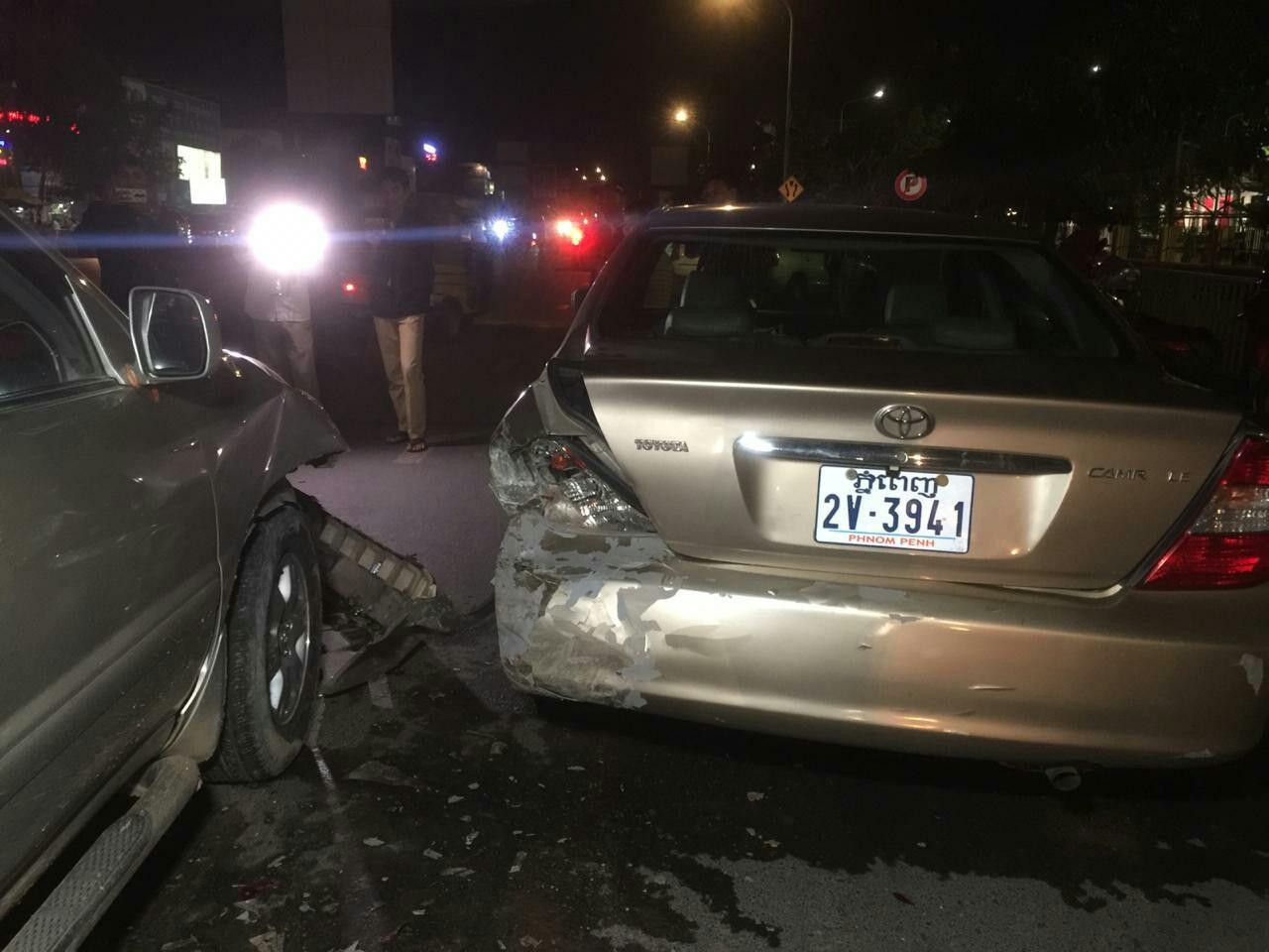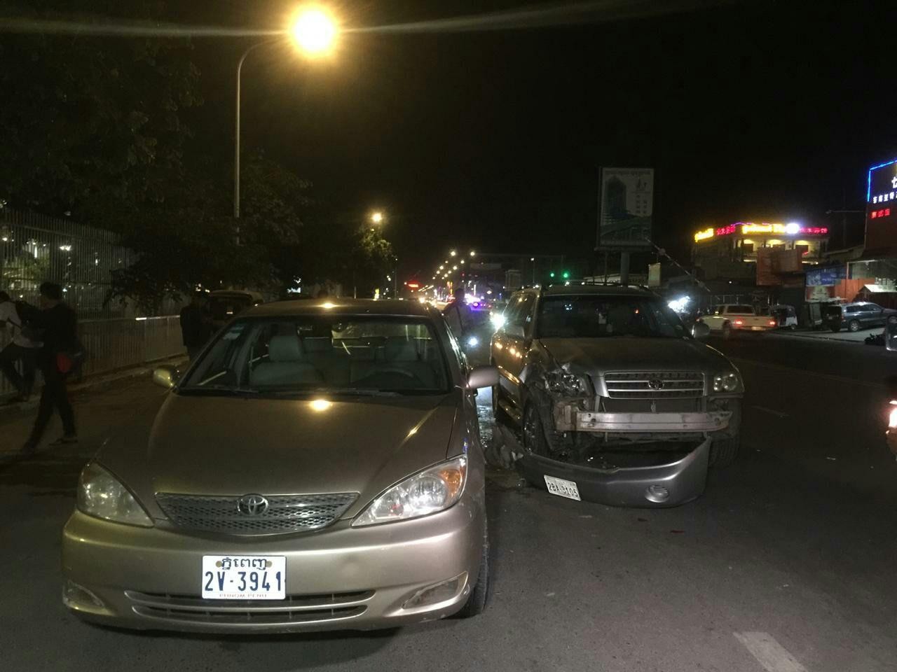 តាមប្រភពព័ត៌មានពីកន្លែងកើតហេតុបានឲ្យដឹងថា មុនពេលកើតហេតុគេឃើញរថយន្តកាមរីបាឡែនមួយគ្រឿង ពណ៌ស្ករ ពាក់ស្លាកលេខភ្នំពេញ 2V-3941 បើកបរដោយបុរសម្នាក់ក្នុងទិសដៅពីលិចទៅកើត លុះមកដល់ចំណុចកើតហេតុខាងលើបានសុីញ៉ូអែបស្តាំ ខណៈពេលនោះក៏មានរថយន្តមួយគ្រឿងទៀតម៉ាក ហាយឡែនឌ័រ ពណ៌ទឹកប្រាក់ពាក់ស្លាកលេខភ្នំពេញ 2BA-3105 បើកបរដោយបុរសម្នាក់ធ្វើដំណើរស្របទិសគ្នាមកពីក្រោយក្នុងល្បឿនលឿន ស្រាប់តែបុកគូថរថយន្តបាឡែនផ្នែកខាងឆ្វេងពេញទំហឹងបណ្ដាលឲ្យរងកាខូចខាតយ៉ាងដំណំ ចំណែករថយន្តហាយឡែនឌ័រធ្លាក់កាង និងខ្ទេចផ្នែកខាងមុខផងដែរ។