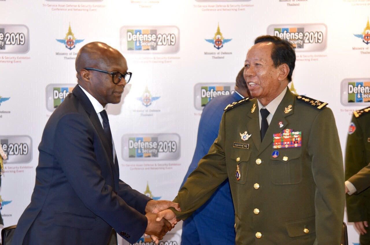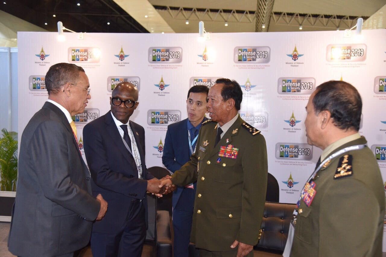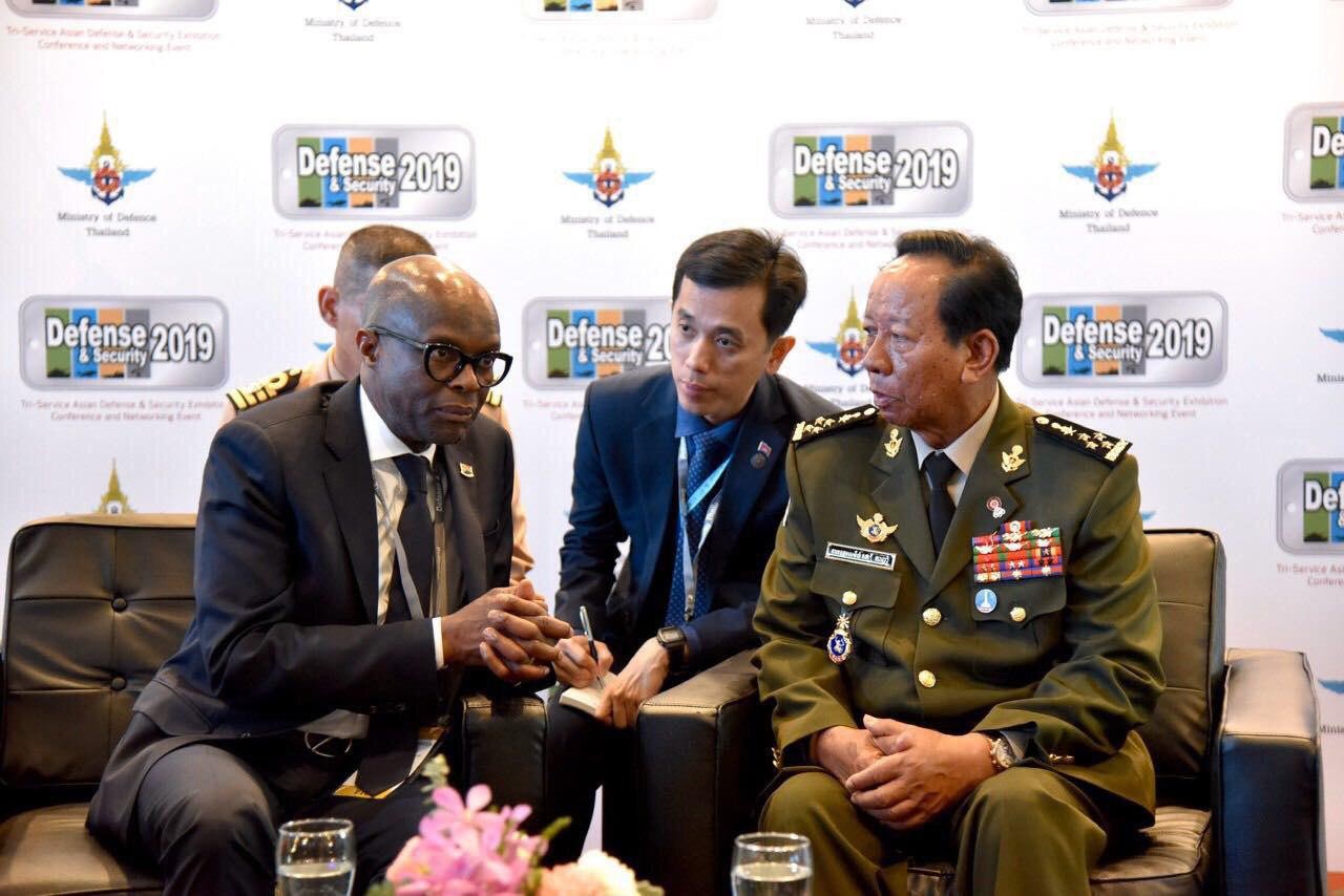 ក្នុងជំនួបទ្វេភាគី កាលពីថ្ងៃទី ១៨ ខែវិច្ឆិកា ឆ្នាំ២០១៩ រវាងសម្តេចពិជ័យសេនា ទៀ បាញ់ ឧបនាយករដ្ឋមន្ត្រី រដ្ឋមន្ត្រីក្រសួងការពារជាតិ ជាមួយ ឯកឧត្តម ថាបាង ម៉ាកវីឡា ( Thabang Makwetla) អនុរដ្ឋមន្ត្រីក្រសួងការពារជាតិ និង អតីតយុទ្ធជន នៃសាធារណរដ្ឋអាហ្វ្រិកខាងត្បូង ក្នុងឱកាសដែល បានមកចូលរួមទស្សនាការតាំងពិព័រណ៍សន្តិសុខ និង ការពារជាតិ ដែលបានរៀបចំឡើង ដោយ ក្រសួង ការពារជាតិ នៃព្រះរាជាណាចក្រថៃ នៅទីក្រុងបាងកក ឯកឧត្តម ថាបាង ម៉ាកវីឡា បានជំរាបជូន សម្តេចពិជ័យសេនា អំពីគោលបំណងធ្វើទំនាក់ទំនងកិច្ចសហប្រតិបត្តិការ ជាមួយព្រះរាជា ណាចក្រ កម្ពុជាលើវិស័យការពារជាតិ និង វិស័យផ្សេងៗដ៏ទៃទៀតរវាង កម្ពុជា និង អាហ្រ្វិកខាងត្បូង ។