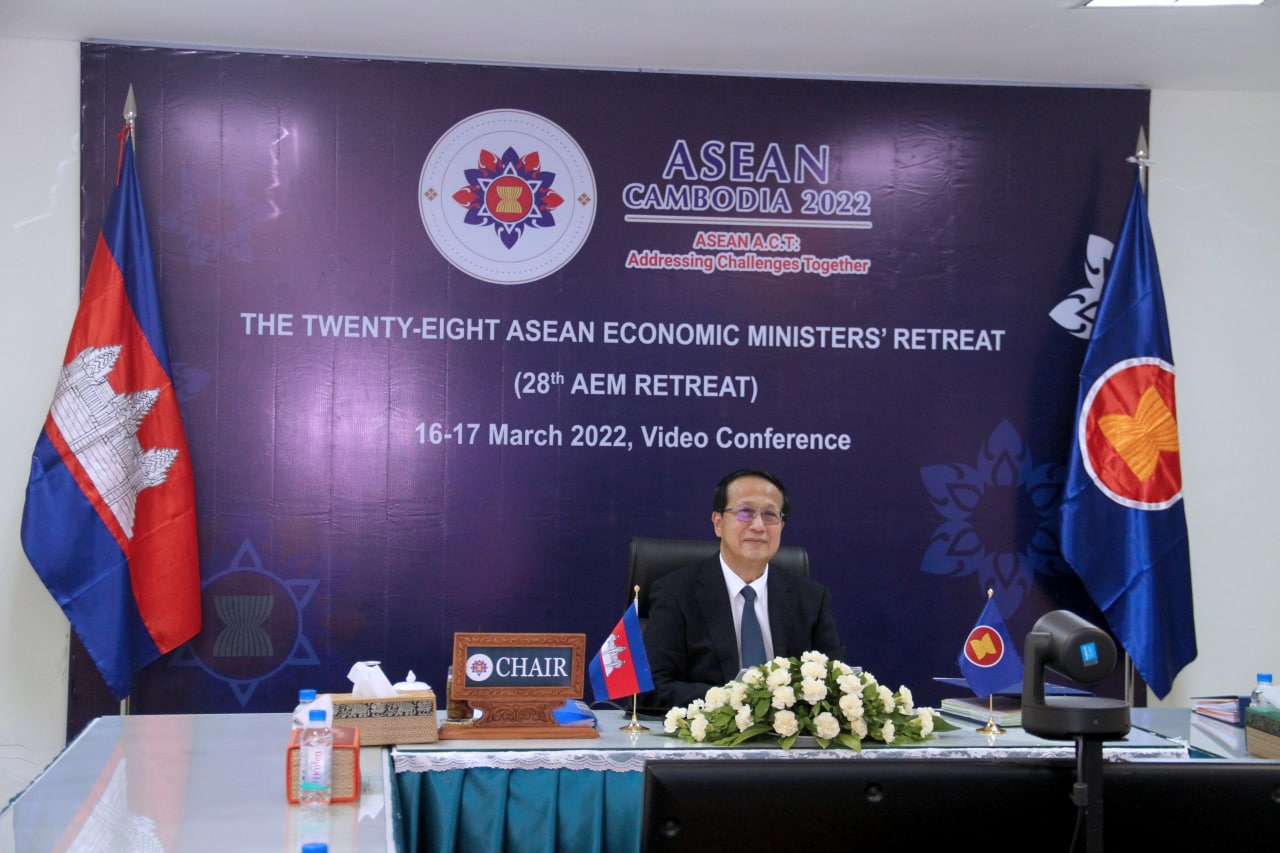 ភ្នំពេញ៖ឯកឧត្តម ប៉ាន សូរស័ក្ដិ រដ្ឋមន្រ្ដីក្រសួងពាណិជ្ជកម្ម ក្នុងនាមជាប្រធានកិច្ចប្រជុំរដ្ឋមន្រ្តីសេដ្ឋកិច្ចអាស៊ាន (AEM Chair) ក្នុងឆ្នាំ២០២២ បានបញ្ជាក់ឱ្យដឹថា កិច្ចប្រជុំចង្អៀត រដ្ឋមន្រ្តីសេដ្ឋកិច្ចអាស៊ានលើកទី២៨ (THE TWENTY-EIGHTH ASEAN ECONOMIC MINISTERS’ RETREAT–the 28th AEM Retreat)និងកិច្ចប្រជុំពិគ្រោះ យោបល់រវាងរដ្ឋមន្ត្រីសេដ្ឋកិច្ចអាស៊ាននិងក្រុមប្រឹក្សាពិគ្រោះយោបល់ធុរកិច្ចអាស៊ាន (Consultations between AEM and ASEANBusiness Advisory Council) តាមប្រព័ន្ធវីដេអូ ដែលមានរយៈពេលពីរថ្ងៃ គឺចាប់ ពីថ្ងៃ ទី១៦-១៧ ខែមីនា នៅទីស្តីការក្រសួងពាណិជ្ជកម្ម។