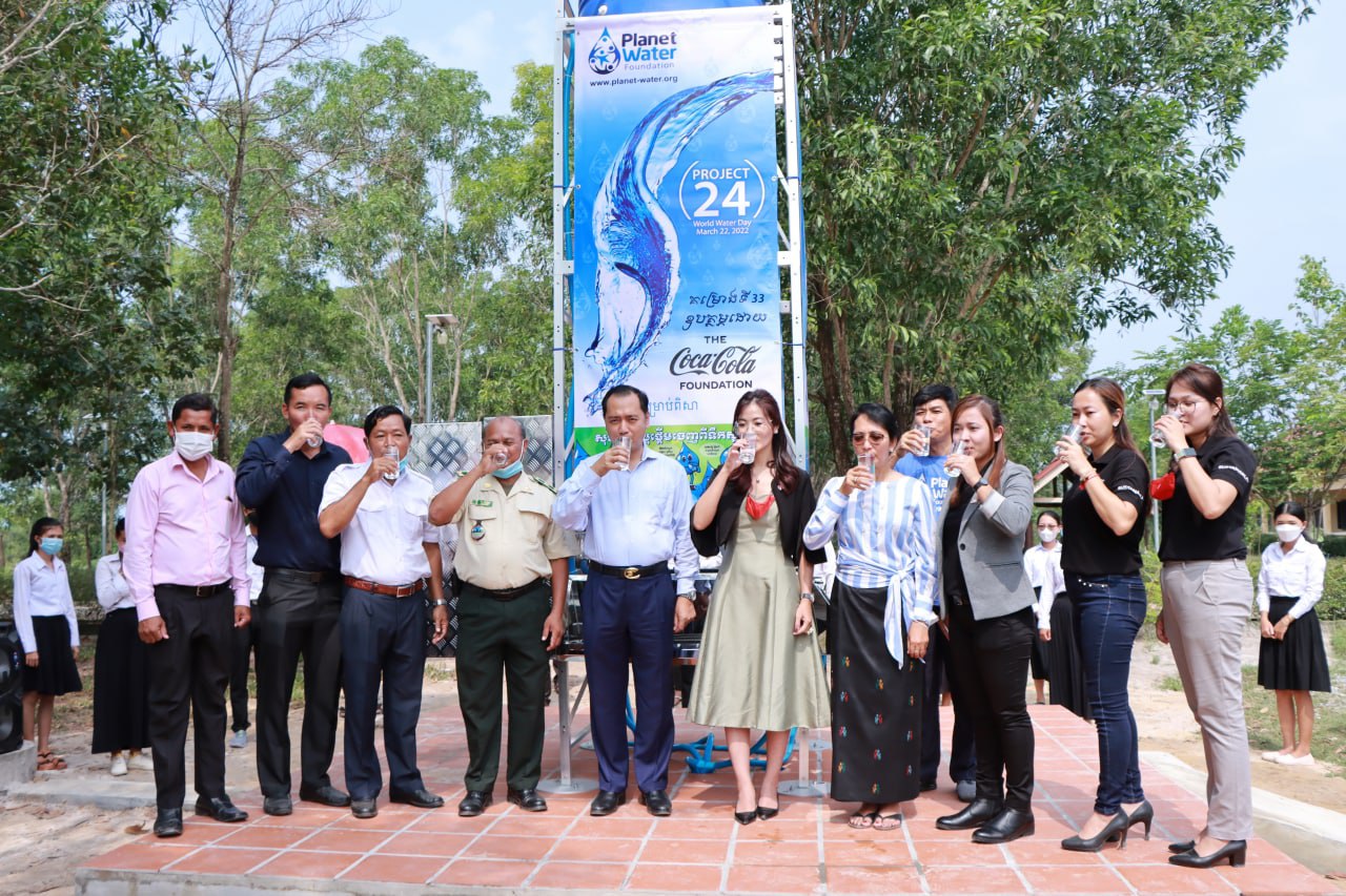 ខេត្តកំពត ៖ ឯកឧត្តម នេត្រ ភក្ត្រា រដ្ឋលេខាធិការក្រសួងបរិស្ថាន បានថ្លែងថា ៖ ប៉មចម្រោះទឹកស្អាតដែលផ្តល់ដោយមូលនិធិ កូកា-កូឡានៃក្រុមហ៊ុនភេសជ្ជៈកូកាកូឡាកម្ពុជាបានចូលរួមផលិតទឹកស្អាតប្រកបដោយគុណភាពសម្រាប់សិស្សានុសិស្សនៃវិទ្យាល័យ ហ៊ុន សែន ព្រែកត្នោត និងប្រជាពលរដ្ឋនៅជុំវិញតំបន់នោះប្រើប្រាស់សម្រាប់ពិសាដោយឥតគិតថ្លៃ និងបានចូលរួមក្នុង ការសន្សំសំចៃថវិការបស់សិស្សានុសិស្សលើការទិញទឹក និងថែមទាំងបានចូលរួមកាត់បន្ថយសំណល់ប្លាស្ទិកពីការប្រើប្រាស់ទឹកដបប្លាស្ទិក ធ្វើឱ្យសាលារៀននិងសហគមន៍មានបរិស្ថាននិងអានម័យល្អ។