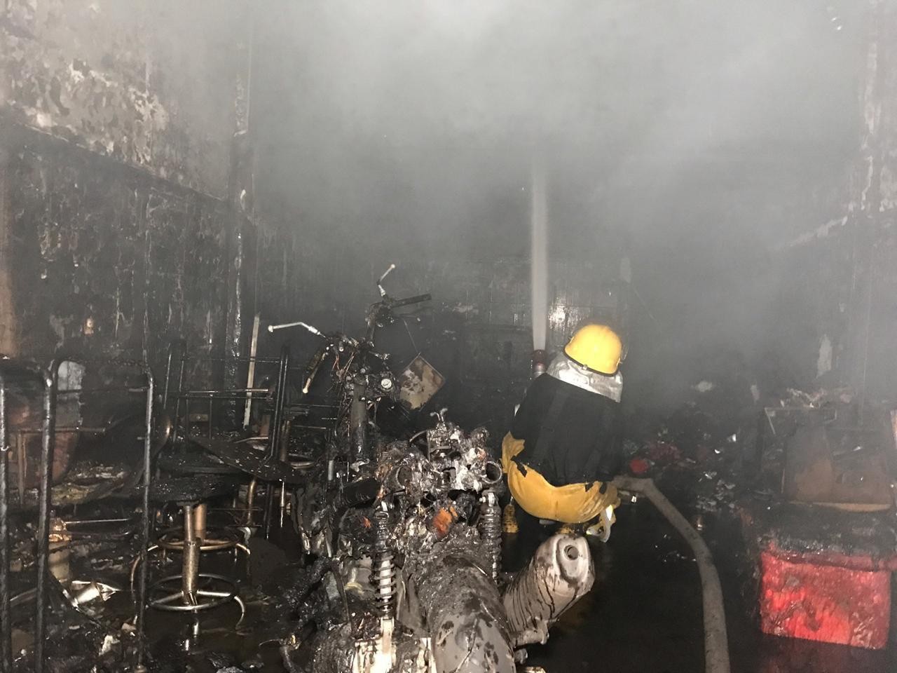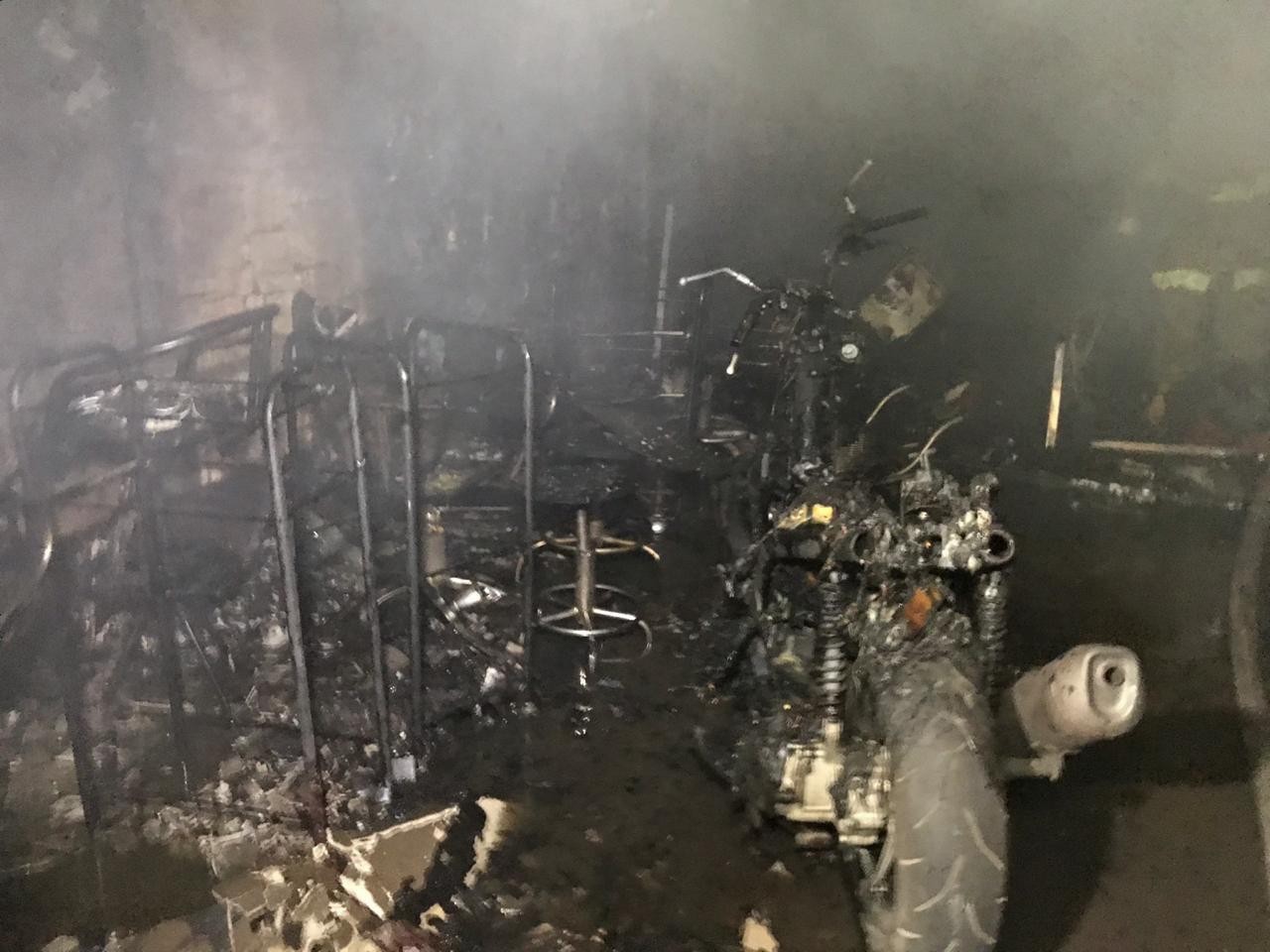 បន្ទុបដែលឆាបឆេះនោះមានចំនួន២បន្ទប់ក្នុងនោះបន្ទប់ទី១កន្លែងជាងកាត់សក់អស់ម៉ូតូ ធំ១ គ្រឿង និងសម្ភារខូចខាតទាំងស្រុង