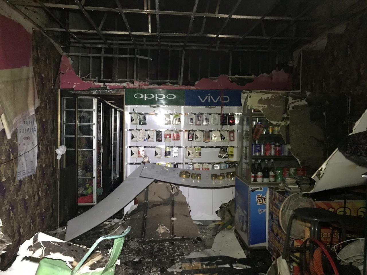 តាមសាក្សីនៅកន្លែងកេីតហេតុបានឲ្យដឹងថា មុនពេលកេីតហេតុឮសំឡេងផ្ទុះភ្លាមៗក៏ហុយផ្សែងបង្កើតចេញជាអណ្ដាតភ្លើងឆេះចេញពីបន្ទប់ជាងកាត់សក់មួយកន្លែង(យីហោប៊ូយហាយឡាយ) ហើយក៏រាលដាលដល់ហាងលក់ទូរស័ព្ទនៅជាប់គ្នាខូចខាតសម្ភារអស់ជាច្រើន។