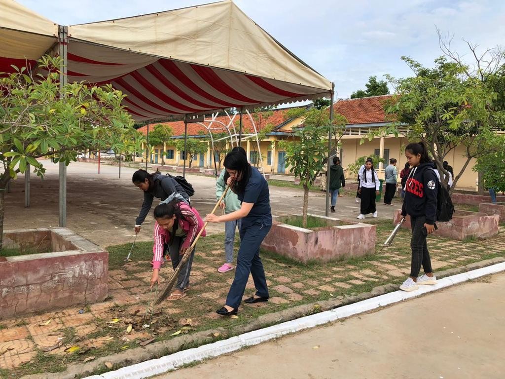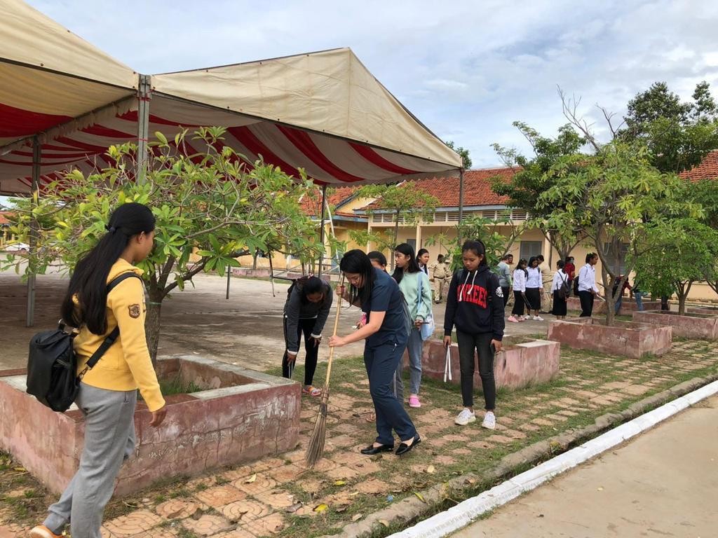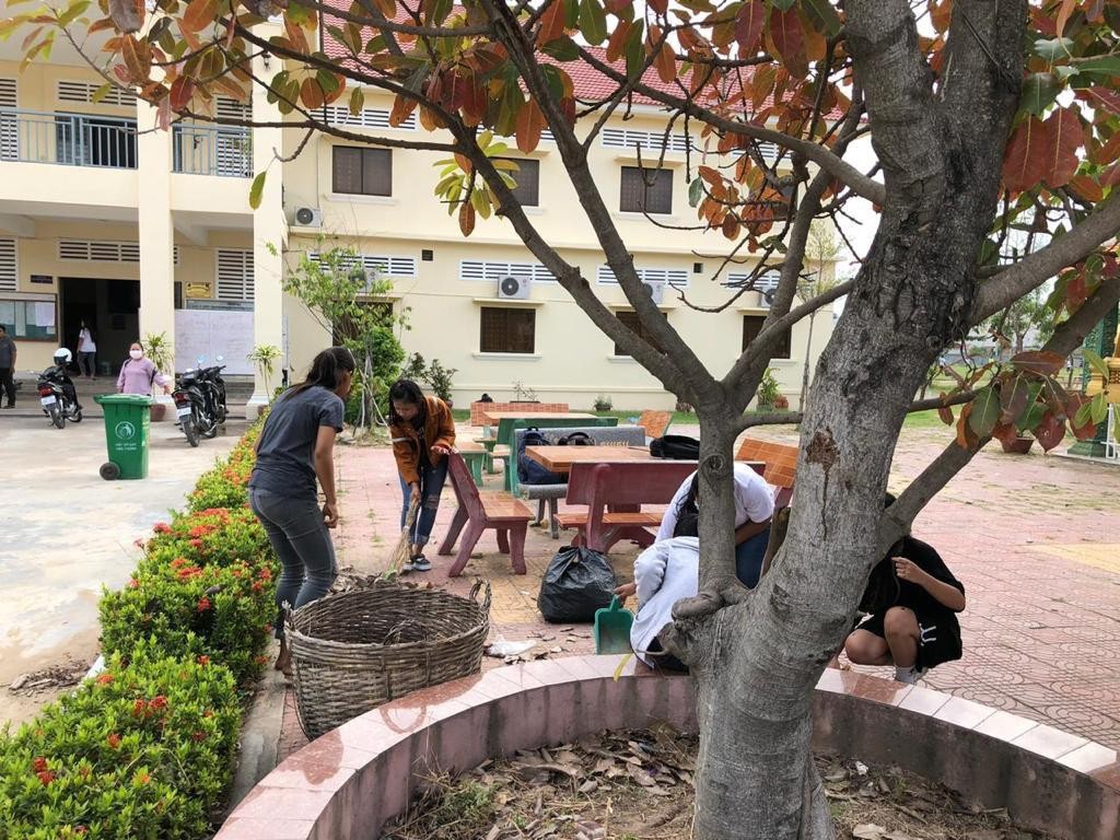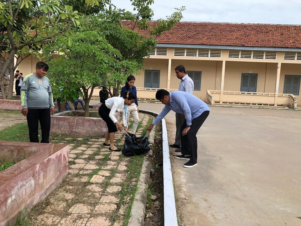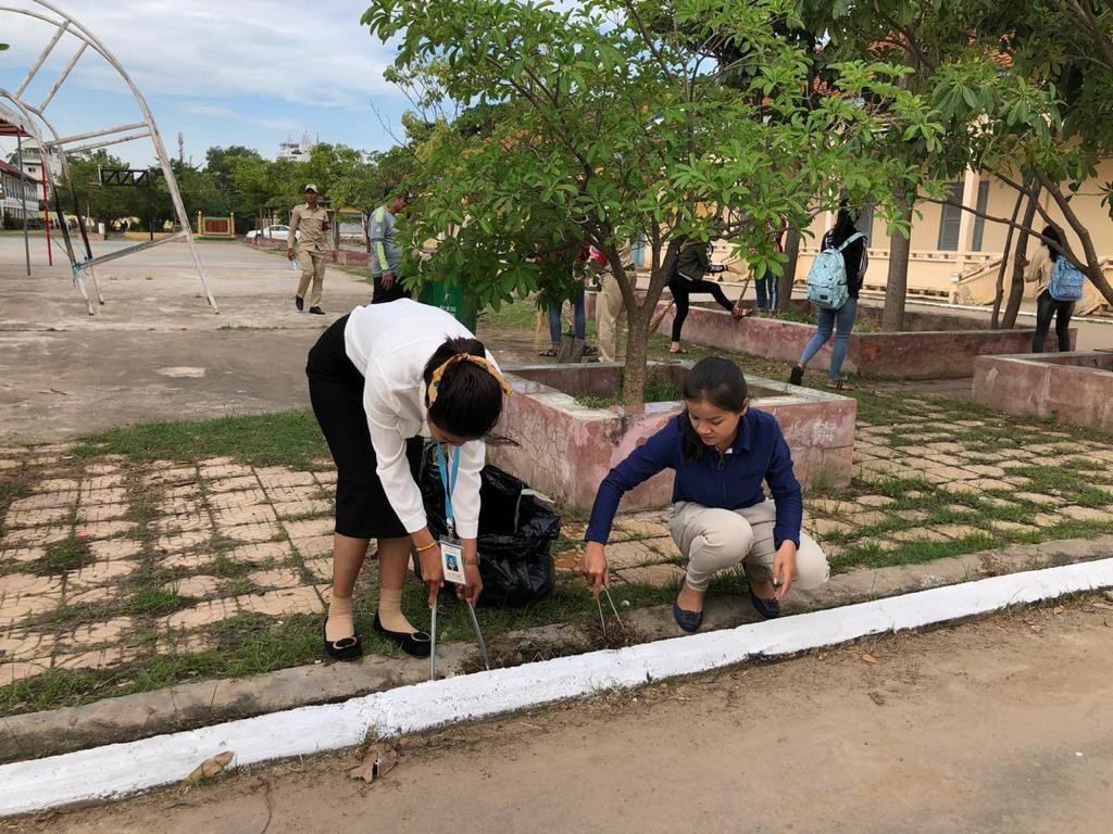 អភិបាលរងខណ្ឌច្បារអំពៅ២រូប ដឹកនាំកម្លាំងសំអាតបរិស្ថានក្នុងបរិវេណវិទ្យាល័យច្បារអំពៅ