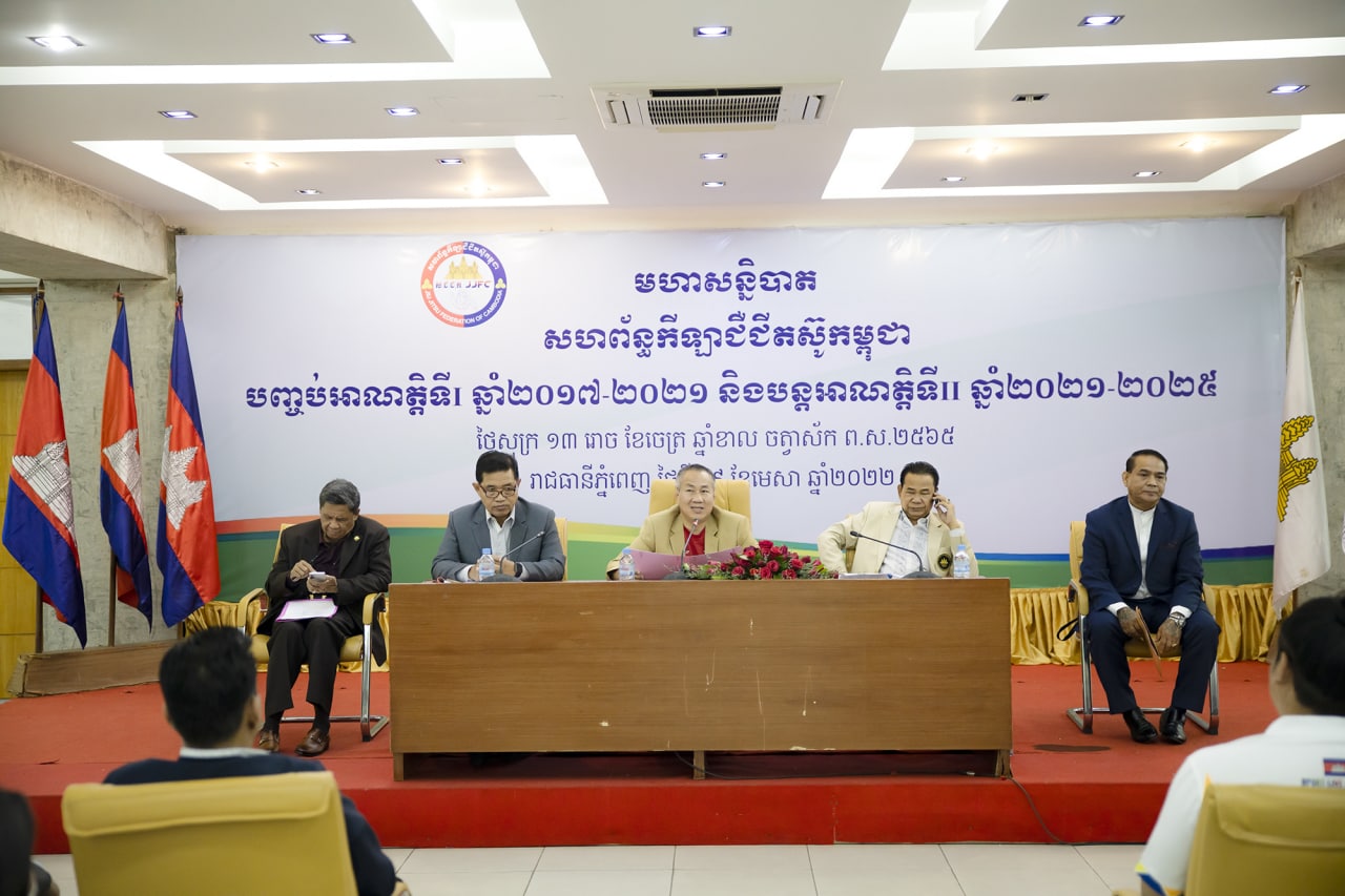សហព័ន្ធកីឡាខ្មែរកីឡាជឺជិតស៊ូកម្ពុជា បានរៀបចំមហាសន្និបាតបញ្ចប់អាណត្តិទី១ ឆ្នាំ២០១៧-២០២១ និងបន្ដអាណត្តិទី២ ឆ្នាំ២០២១-២០២៥ ខណៈក្បាលម៉ាស៊ីនសហព័ន្ធ ត្រូវបានរុះរើសថ្មីស្ទើទាំងស្រុង ក្រោមការរៀបចំ និងគាំទ្ររបស់ក្រសួងអប់រំ យុវជន និងកីឡា និងគណៈកម្មាធិការជាតិអូឡាំពិកកម្ពុជា នៅព្រឹកថ្ងៃទី២៩ ខែមេសា ឆ្នាំ២០២២ ដើម្បីជំរុញការអភិវឌ្ឍ និងពង្រីកសក្ដានុពល ជាពិសេសឆ្ពោះទៅ ស៊ីហ្គេម ឆ្នាំ២០២៣ ។